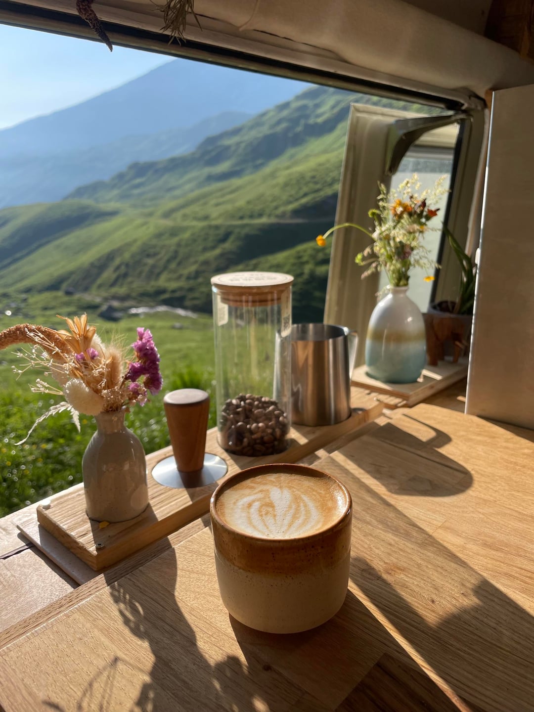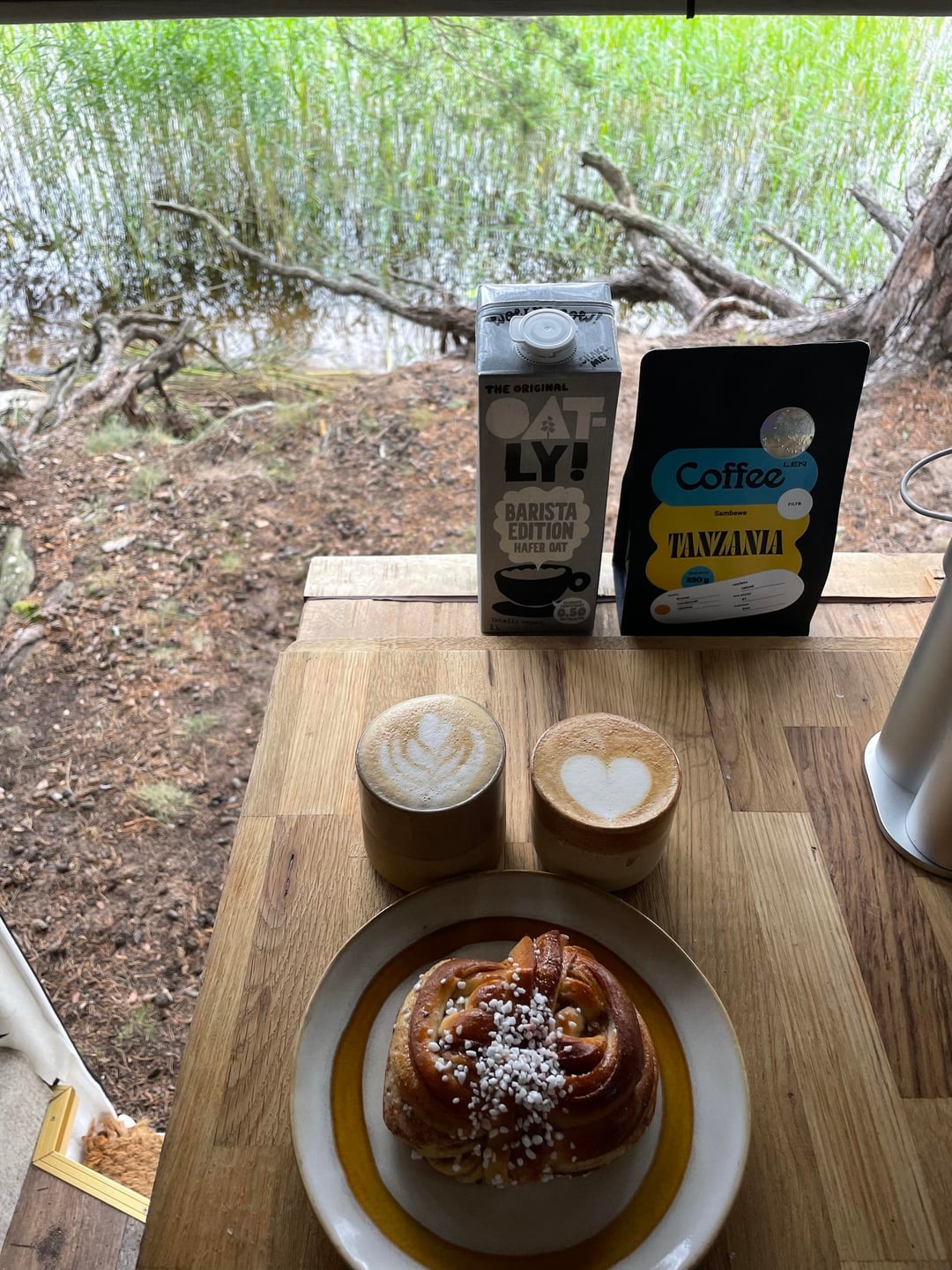 coffee machine is powered with a 2000W inverter, grinder is powered with USB C (100W PD). the espresso quality (we mostly use a fruity light to medium roast) is very good – although most of the time we drink flat whites. during heat-up power is around 800W, during steaming, it is up to 1500W (flow-through heating)