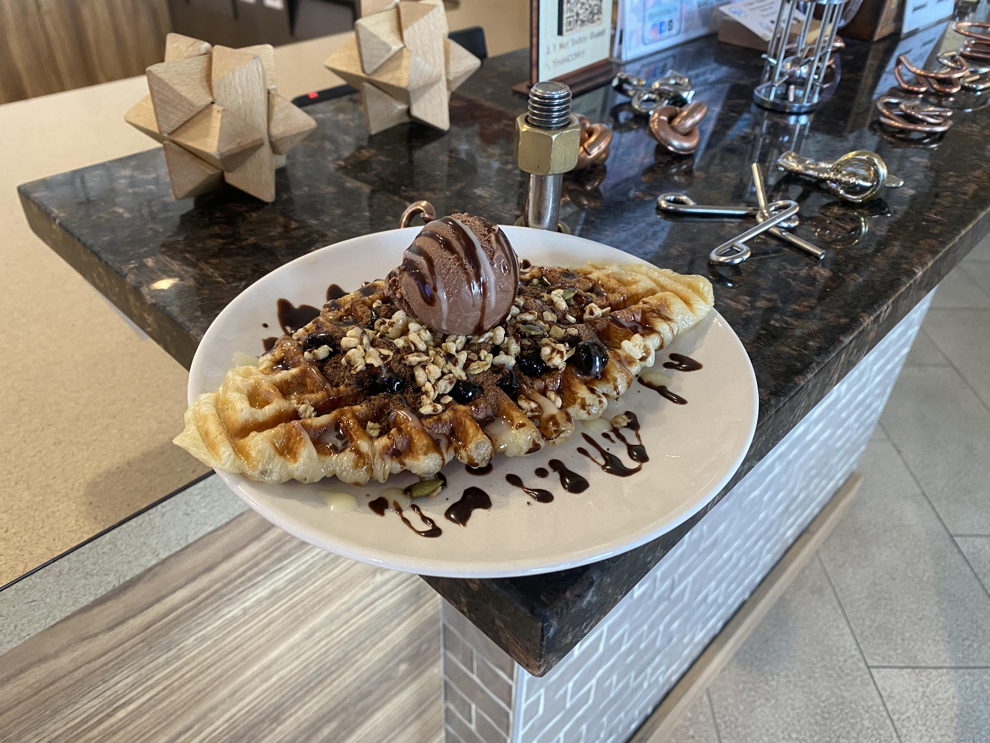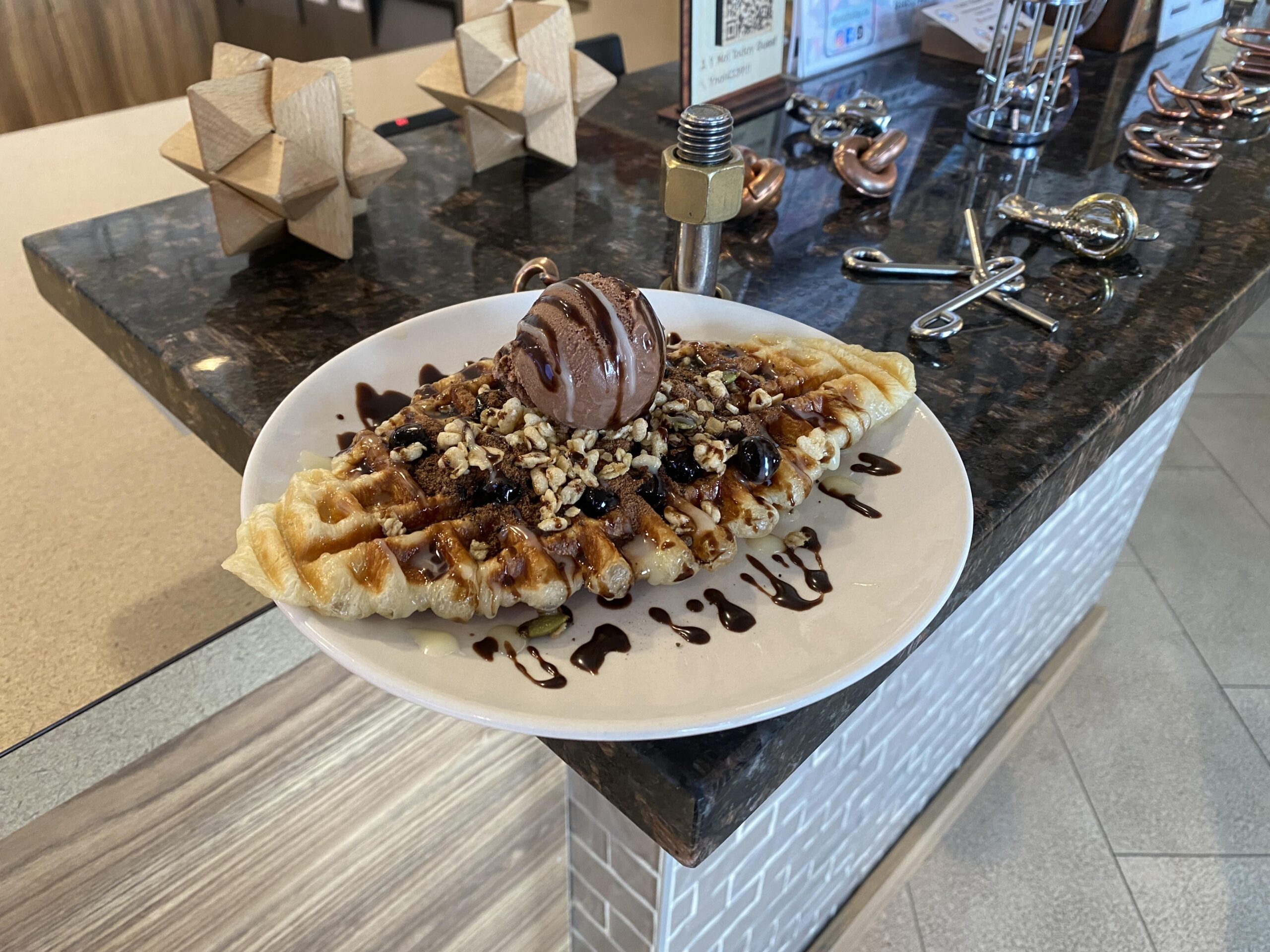 Chocolate croffle, come with Granola mix, crumb, and Ice cream by TZ_CalgaryLocal 2 Comments Nice_Ruin_7329 4 weeks ago Yummm 😋 FlirtatiousFantasy02 4 weeks ago The dessert looks like it has the perfect warm meets cold balance. So satisfying just to look at.😍