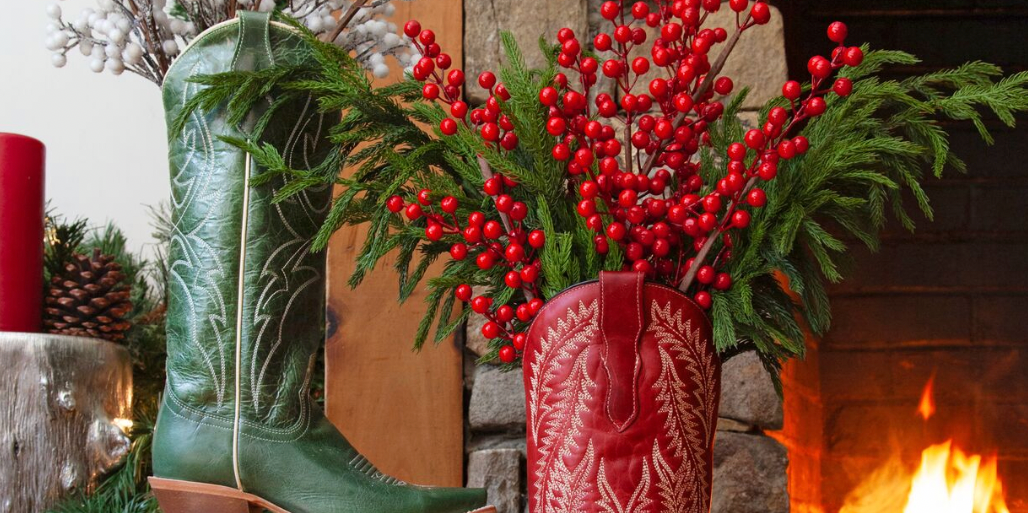 Talk about Christmas décor with some country charm! Turn a pair of old cowboy boots into festive planters by filling them with winter greenery, berries, or faux florals. They make the perfect rustic statement by the fireplace or front door.