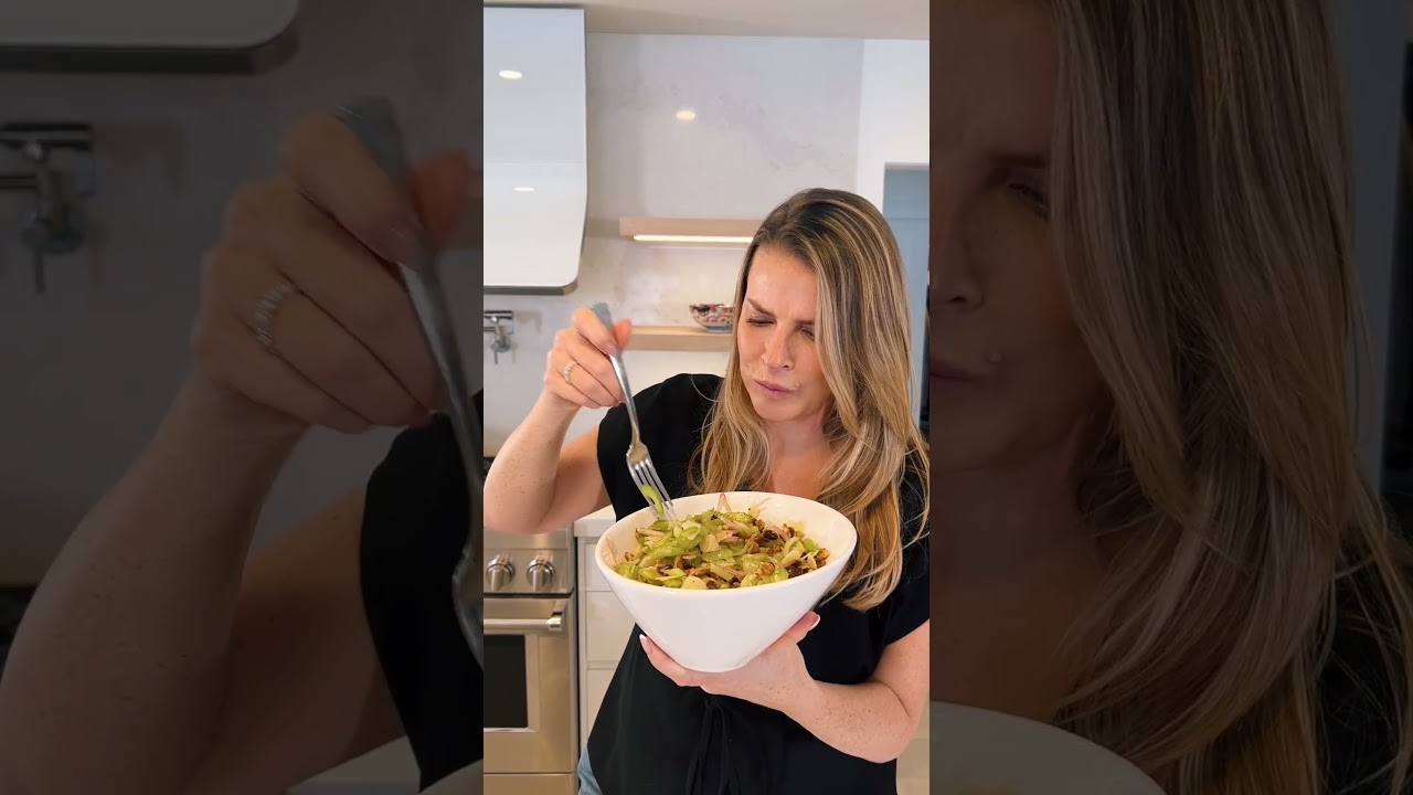 shout out to Natalie chass who borrowed this dish and now we borrowed it from her it’s freaking delicious did not know celery could do that yes celery can be the lead singer in the rock and roll salad band it is crunchy refreshing and kind of the perfect size we’re going to soak our shilad and the lemon juice to kind of get that stink off them get some sweetness from the dates little bit of saltiness from the parmesan and some crunch from the walnuts here’s a pro tip always adjust your seasoning before serving