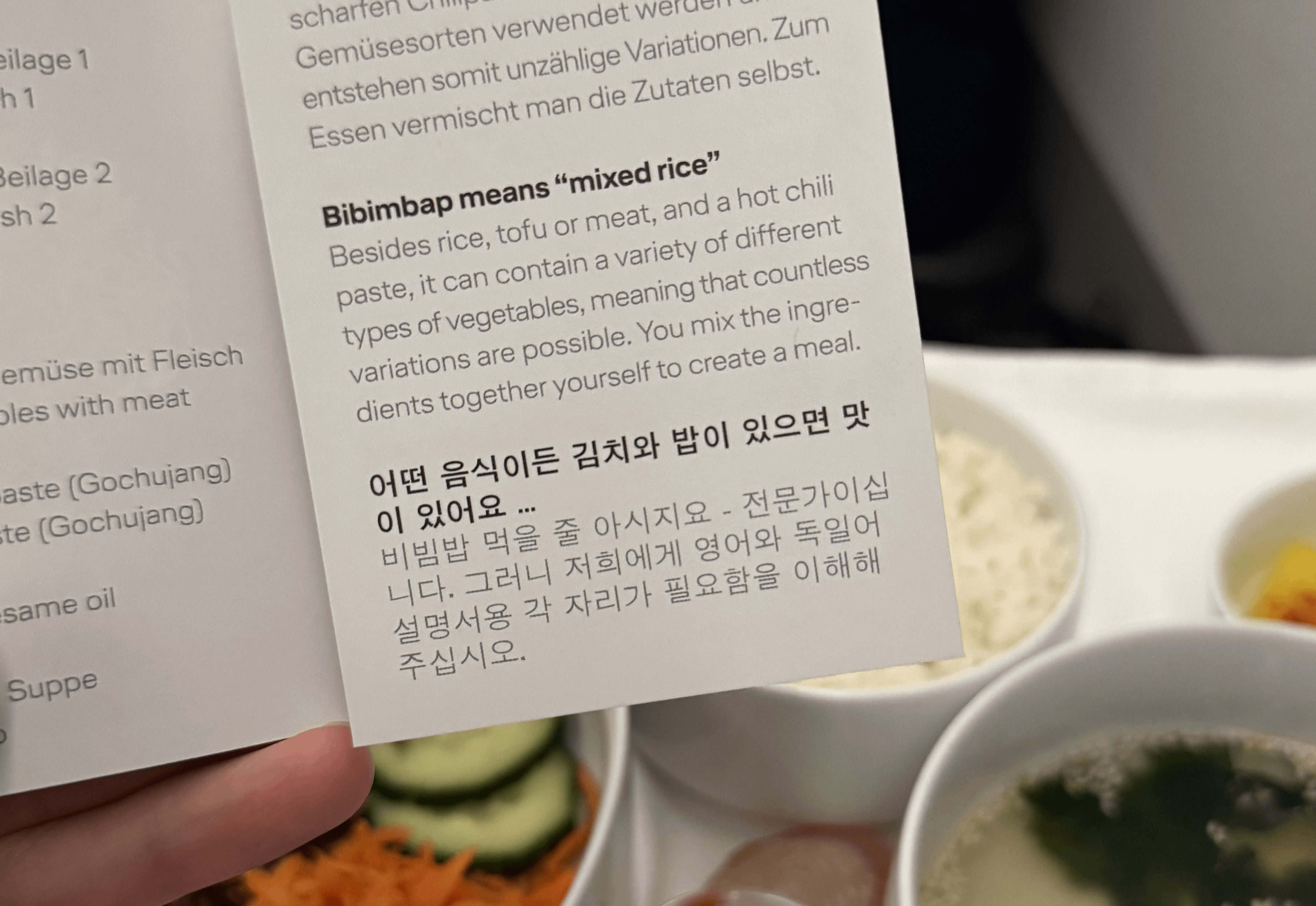 Lufthansa Airline’s Bibimbap instruction in Korean says “you don’t need instructions or history of this dish. You know what Bibimbap is”by Bitter-Goat-8773 Dining and Cooking