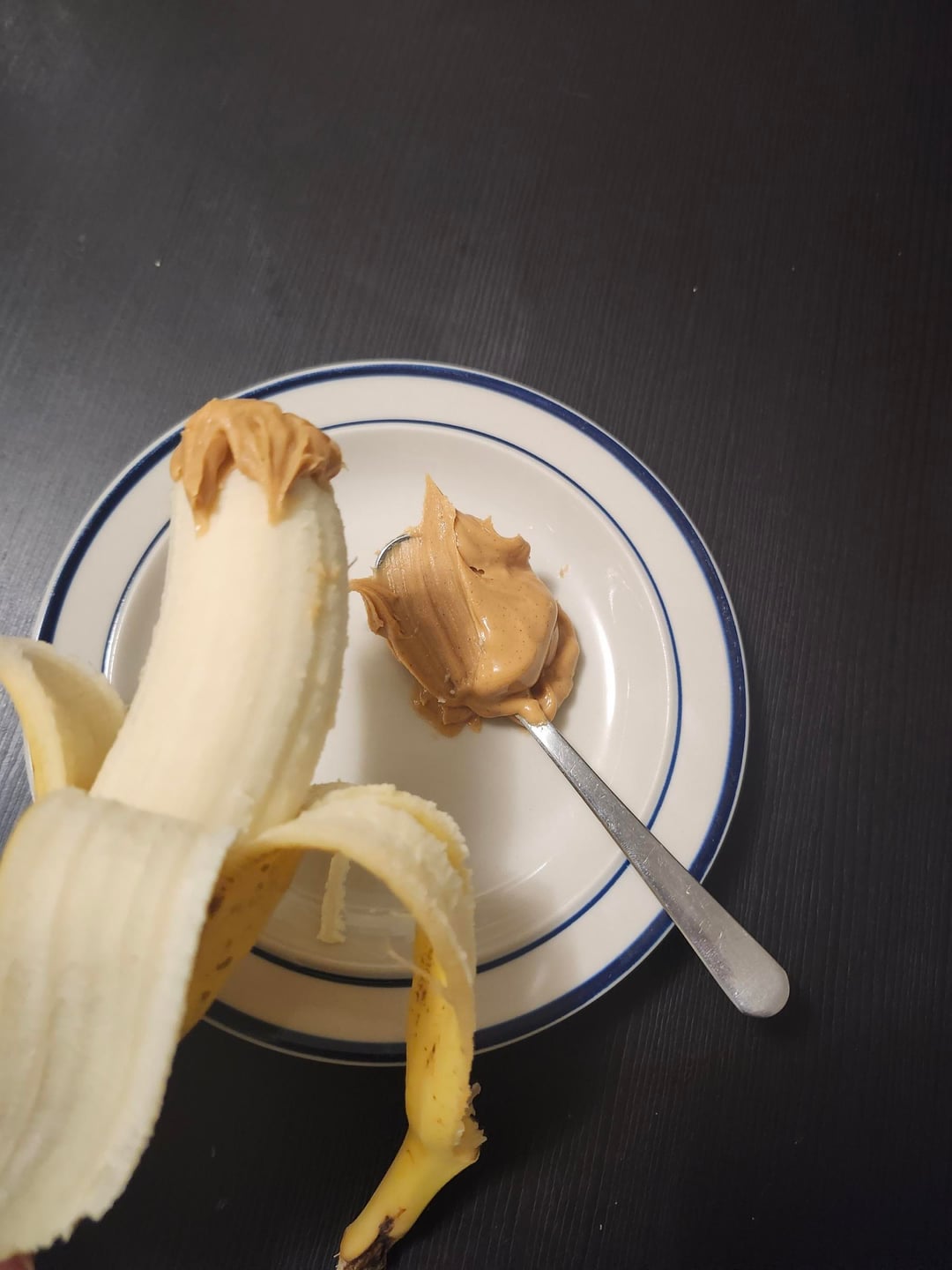 As an evening snack, I opted for cheap and simple, with a banana and peanut butter and a cup of herbal tea with a little honey and a splash of milk.