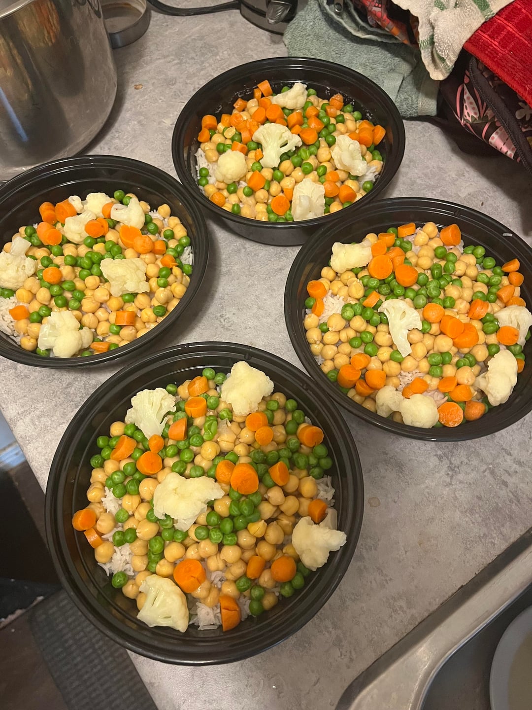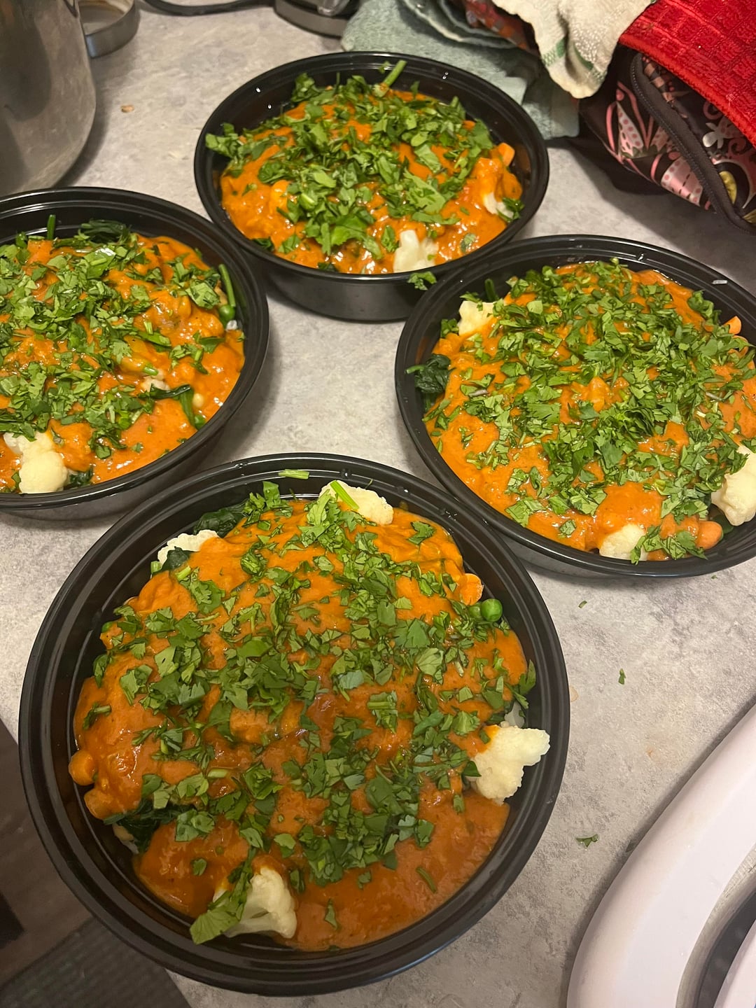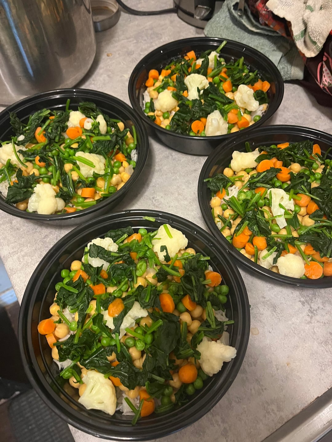 I’ve been wanting to eat healthier, get in better shape etc. and decided to work towards cutting out meat from my diet. This was my first official vegetarian meal prep, a chickpea curry with cauliflower, peas, spinach and carrots.