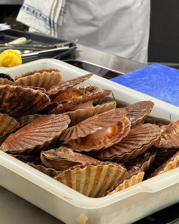 Day two was probably the most challenging skills wise. In the morning you make pasta from scratch, learn how to shell and clean a scallop and make a sauce, which were all fairly tricky. A delicious dish of scallop pasta at the end of it however. In the afternoon we were stuffing, trussing and roasting poussin, learning how to carve, and making potato puree, and another sauce from the sucs – all of which was time consuming and took a lot of concentration. We were knackered by the end of this one! Pity the poor chefs that do this 12 hours a day….