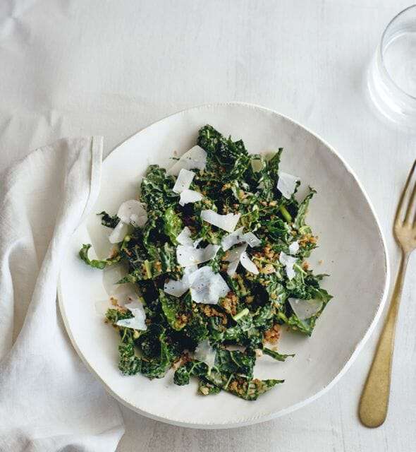 Kale Salad from True Food cookbookANDREW WEIL was 66 years old when the first of the True Food restaurants he’s a partner in opened, in 2008. The founder of the Arizona Center for Integrative Medicine and author of multiple bestsellers on wellness is perhaps the leading champion of an anti-inflammatory diet, and lest that sound anti-delicious, think again. Enter “True Food: Seasonal, Sustainable, Simple, Pure,” the cookbook to empower us to create it at home. After buying and enjoying “True Food,” released last October, I asked if I could share a recipe—specifically the restaurant’s signature dish, for a Tuscan kale salad enlivened with mashed garlic, red pepper, shaved Parmigiano and toasted bread crumbs.