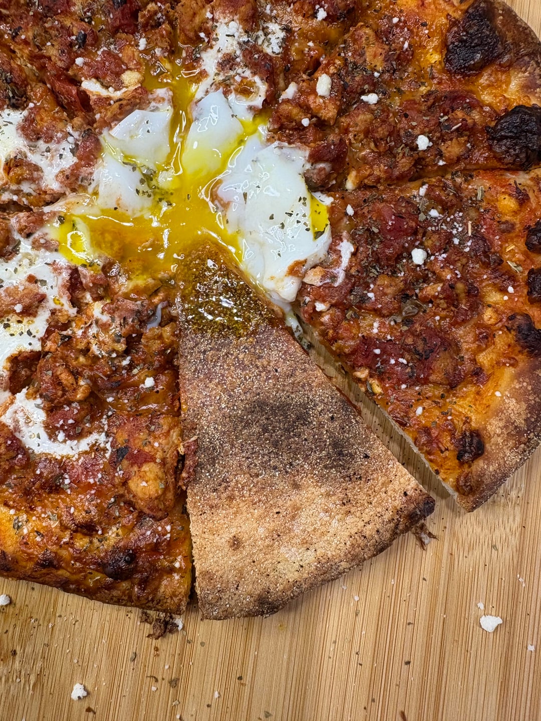 Yes! I made a shakshuka pizza on the Ooni in 2021 with a discarded dough ball as an experiment. Similar to you, I went cheese-less or may have added parmigiano to the base. Finished with a lot of harissa and fresh parsley. It was delicious. If I remember correctly I ate this all by myself as a WFH lunch during covid when taking a long lunch break wasn’t out of the norm (those days are over haha).
