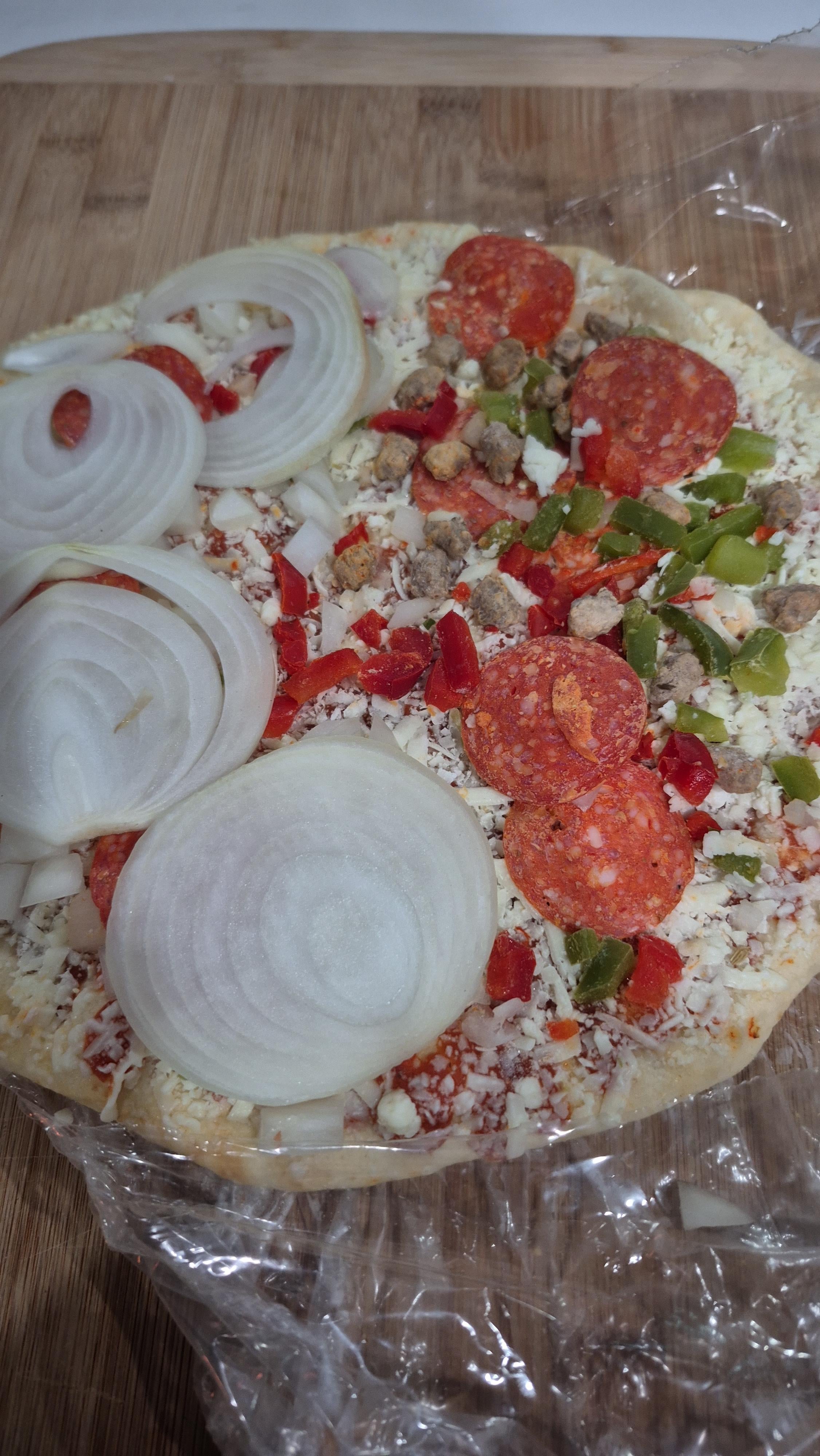 Yes, it is frozen, but I have been cooking/shopping and will be for the next 2 days so I wanted an easy night after long day of work. I didn't even have to say anything as they saw me picking the stuff I don't like off of my side, just grabbed the onion and started slicing 😂