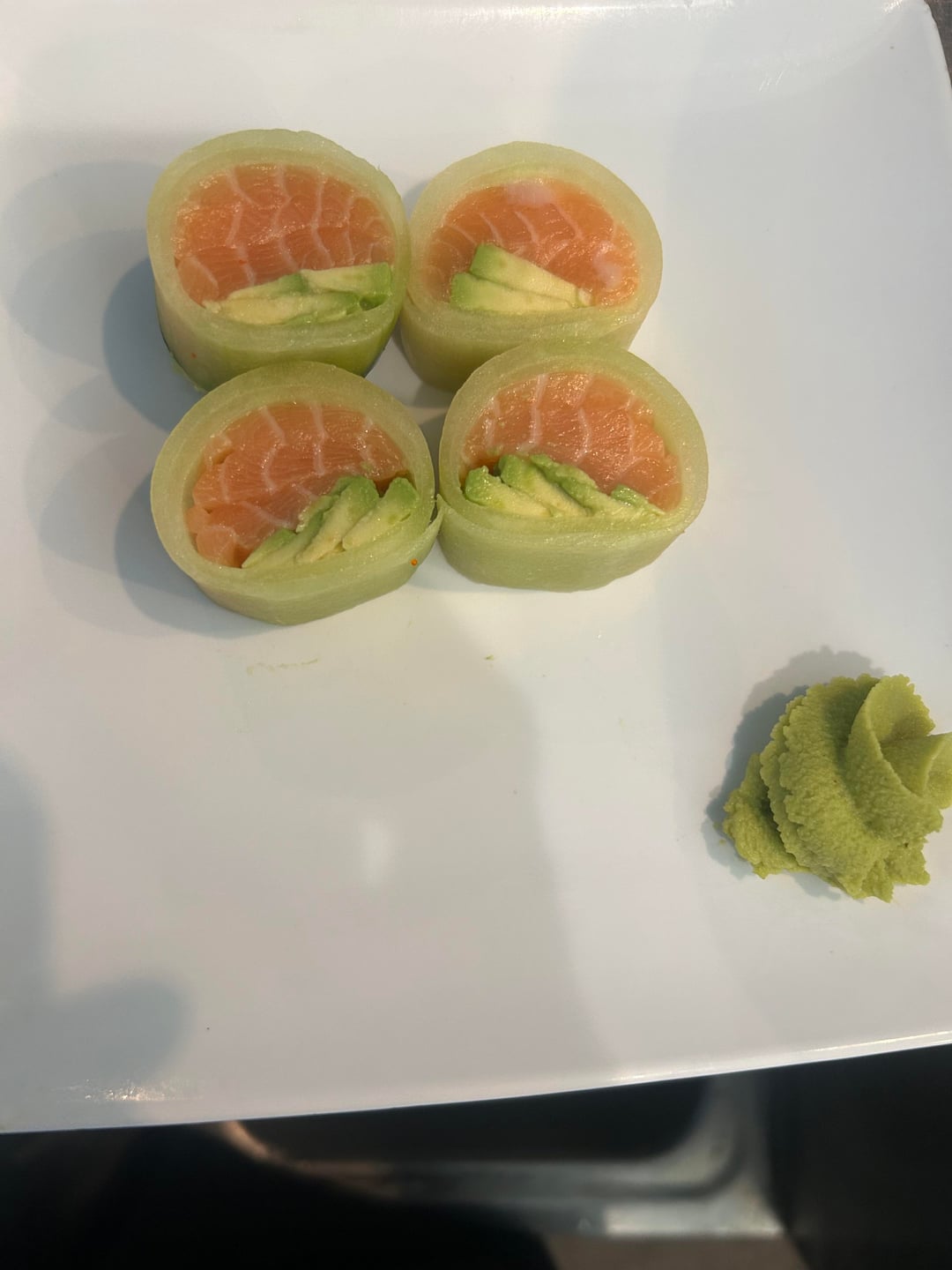 Not my style but the rice looks perfectly cooked, your knife looks sharp as hell. 8/10 as the original inside out needs some more filling to prevent the bit of Nori peeking out, which I compare to having a mouse tail. And the roll is not cut at the same height/size. Overall very good technique.