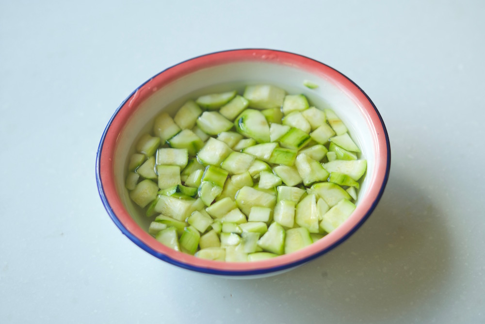 Sprinkle the zucchini with salt, and let drain in a colander for an hour.