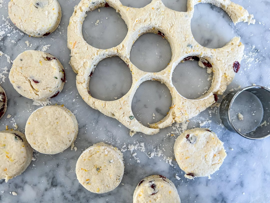 Winter-inspired scones filled with dried cranberries, rosemary, and orange zest.