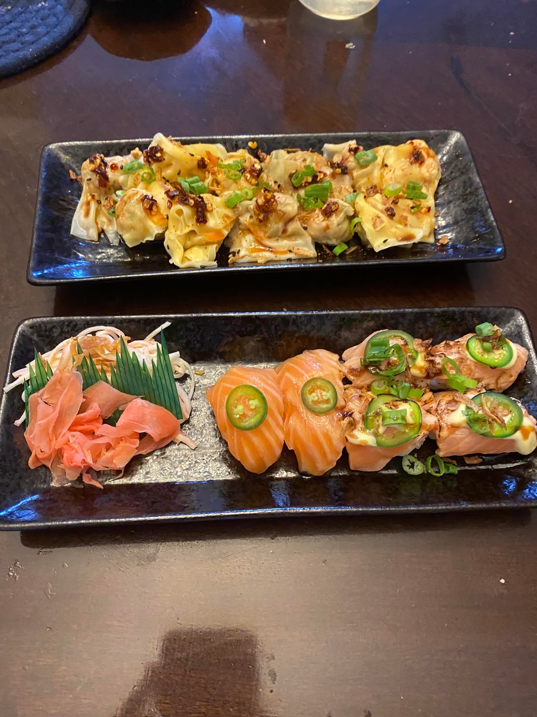 Disclaimer: First sushi pic my plate was on my bottom and I had some miso soup with the meal. Second sushi pic I only had half of the spicy wontons with my bottom plate. Evidently you can tell I love sushi and tacos haha.