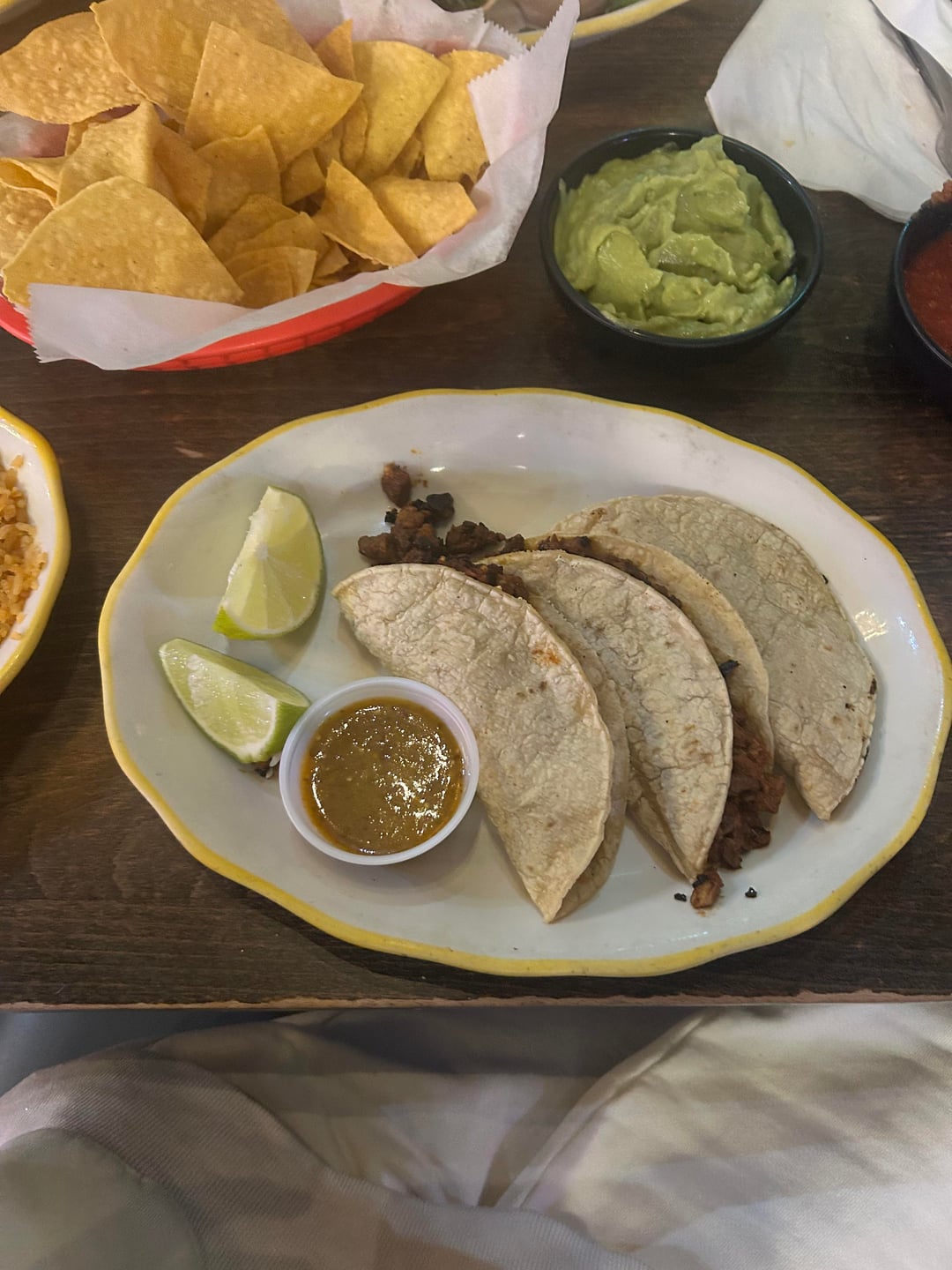 Al pastor tacos on corn tortillas. What do we estimate the guac bowl being too?