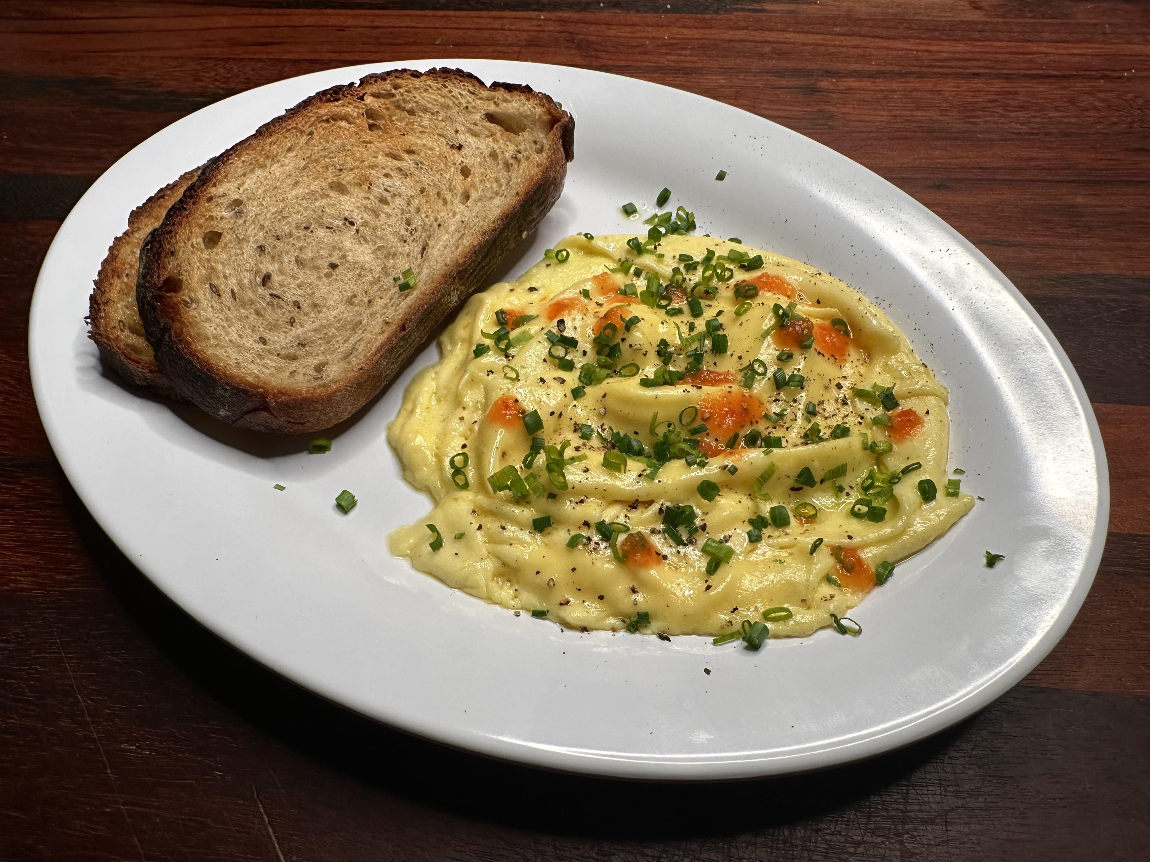Folded egg with chives, fresh cracked black pepper, and some habanero hot sauce. Served with buttered homemade rye toast. by No_Pattern3088 2 Comments Bubbly57 9 hours ago Looks fabulous and really delicious 🌟 😋 Fuzzy_Welcome8348 8 hours ago Looks amazing!