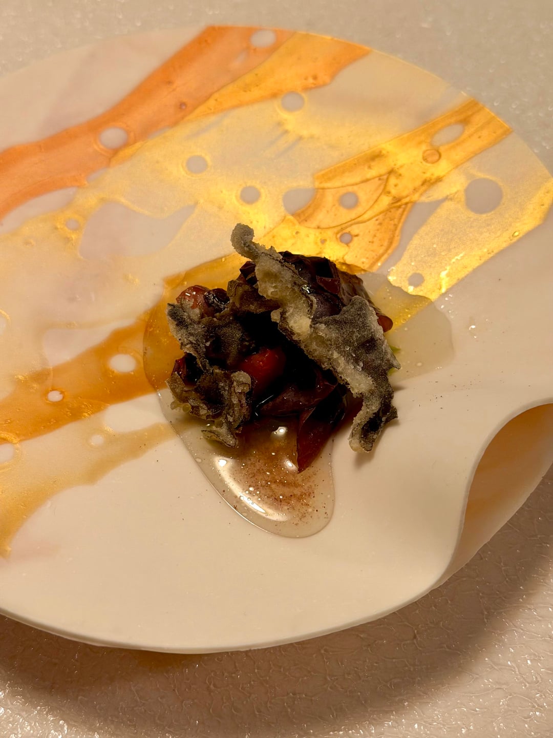 The menu fostered this notion well. Mid-meal tasting the baba… which had been soaked in orange wine, paired with a glass of the same orange wine, and dry ingredients served in a glass to mimic scent profile of that wine was in no way subtle.