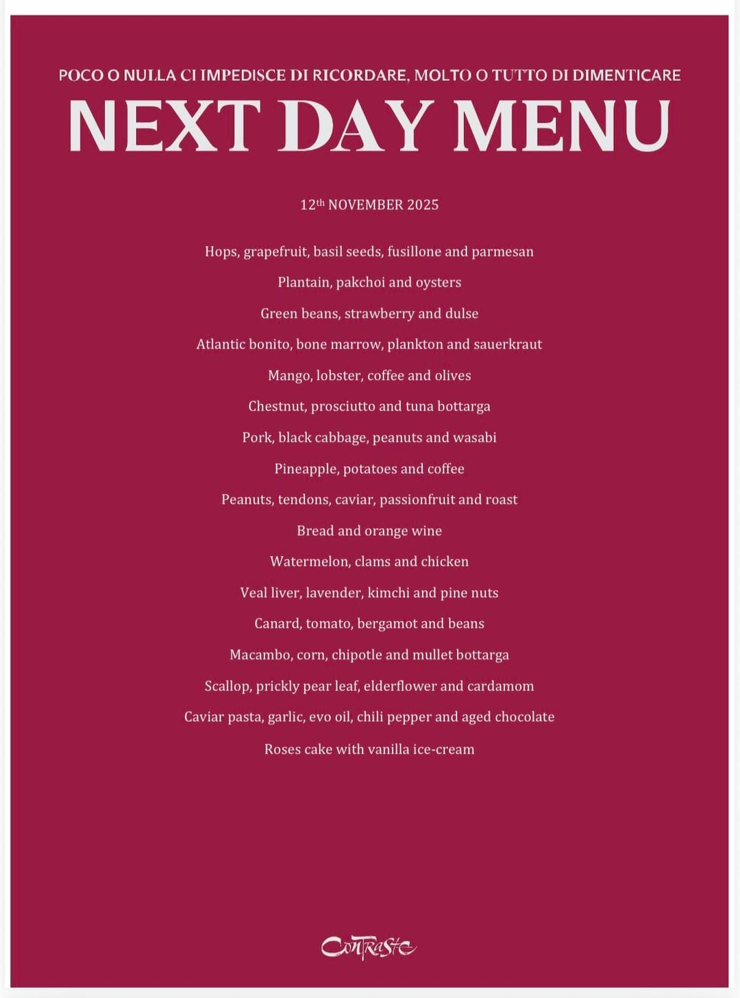 Caviar pasta, garlic, evo oil, chili pepper and aged chocolate