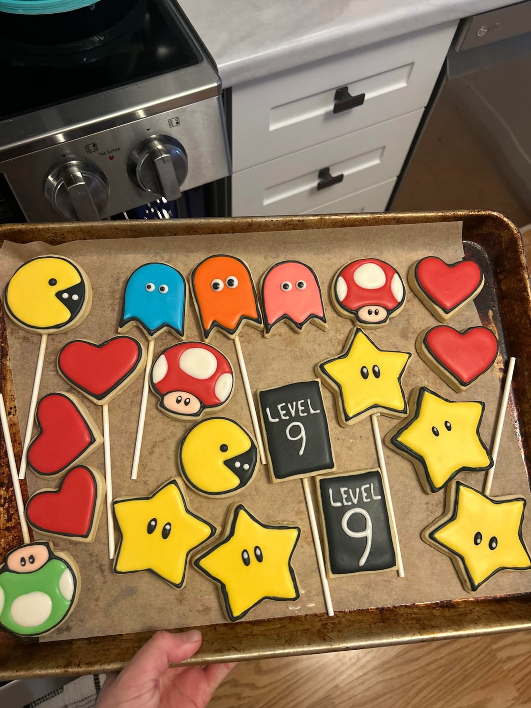 Cute little korok cake for my daughter.. and some sugar cookies for her arcade/gamer party.