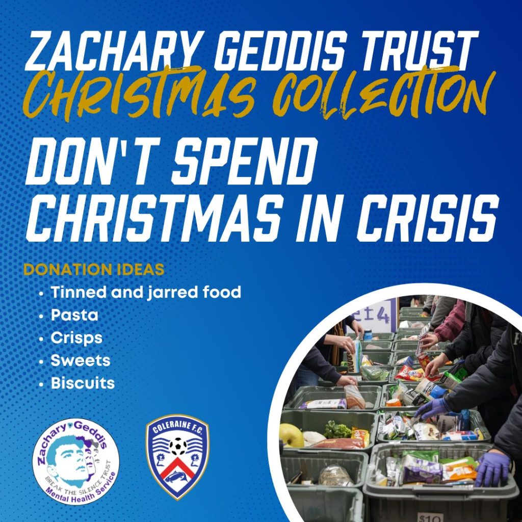 Dale Pryde-MacDonald, CEO at Coleraine FC, added: “The club are proud to be working with the Zachary Geddis Trust on the Christmas Collection. This is something that means a lot to our local community and will help countless people locally who need it during the festive period.