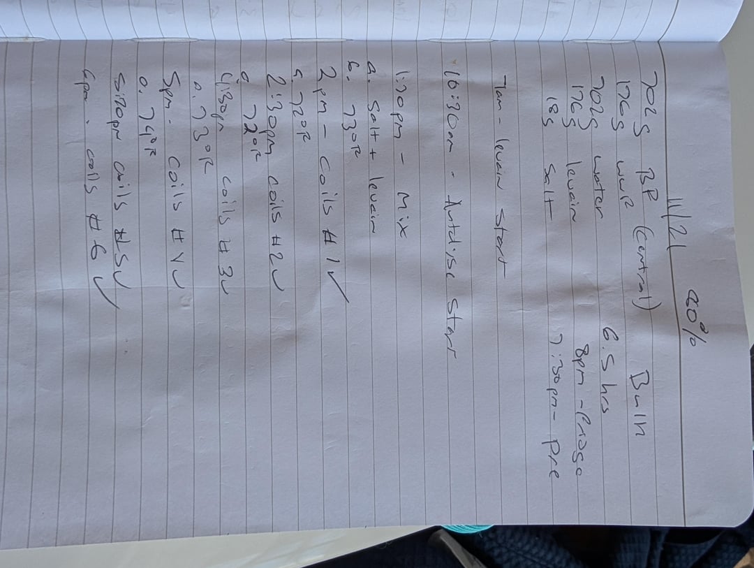 My time from mixing in the starter and putting it in the fridge is typically between 6 -7 hours depending on the temperature. I typically track the temperature with each round of coils. ~75f and above typically means 6-6.5 hrs of bulk fermentation. Anything less and it's more like 6.5 – 7.5 hrs.