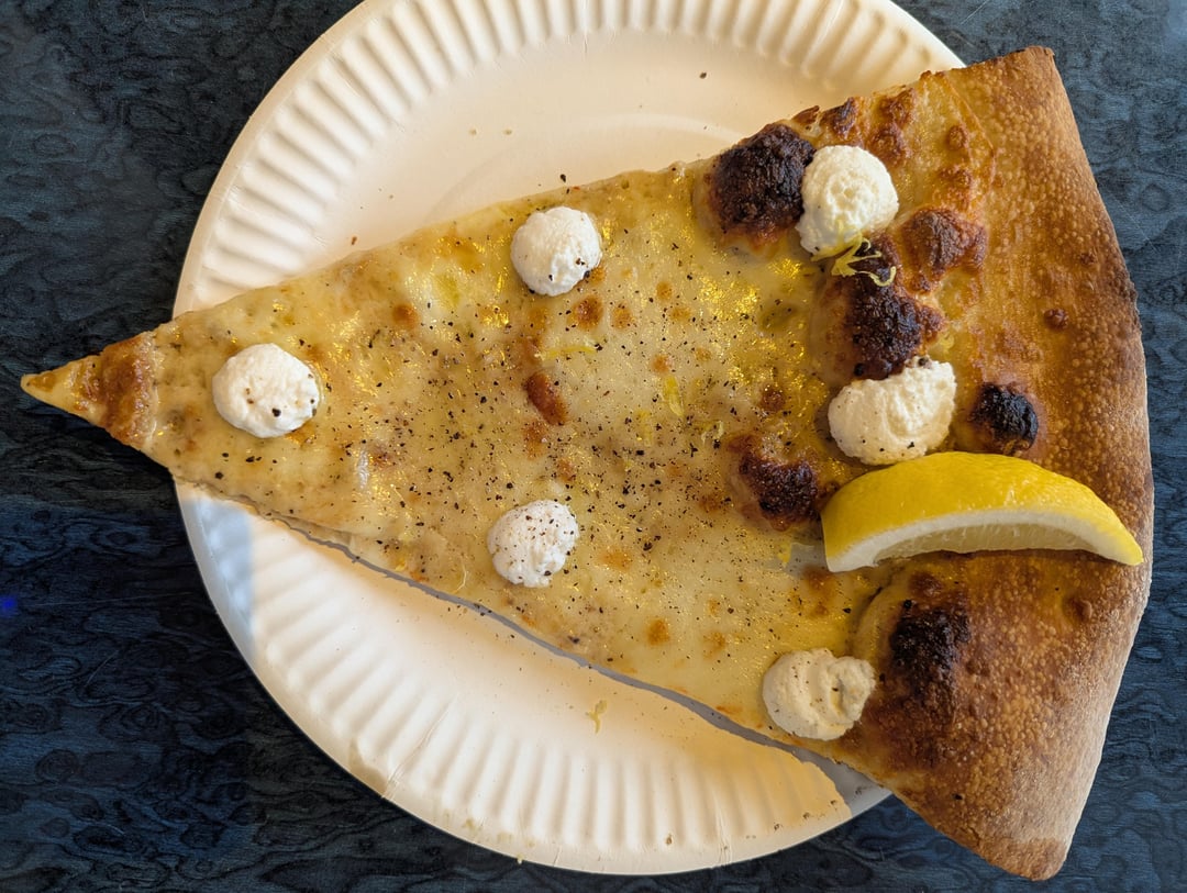 Order: Lemonhead (Lemon pepper cream, mozzarella, ricotta, cracked black pepper, lemon zest, lemon wedge)