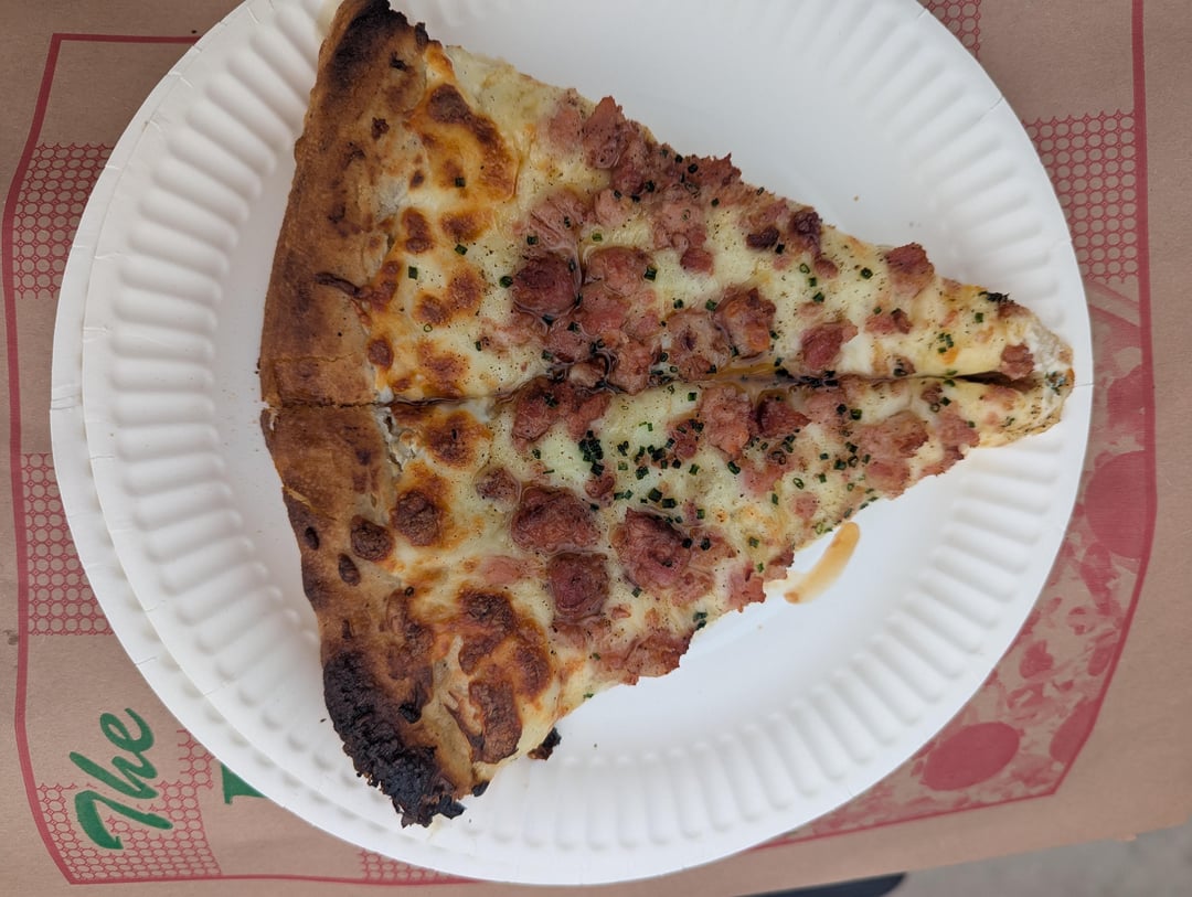 Thoughts: I got the pepperoni slice. A classic slice of pizza. I found the taste was good. The bottom crust is like biting into a cracker as it is crunchy, which was not something I expected. It didn't take away from the pizza or experience but something that stood out. I would come back and try something else.