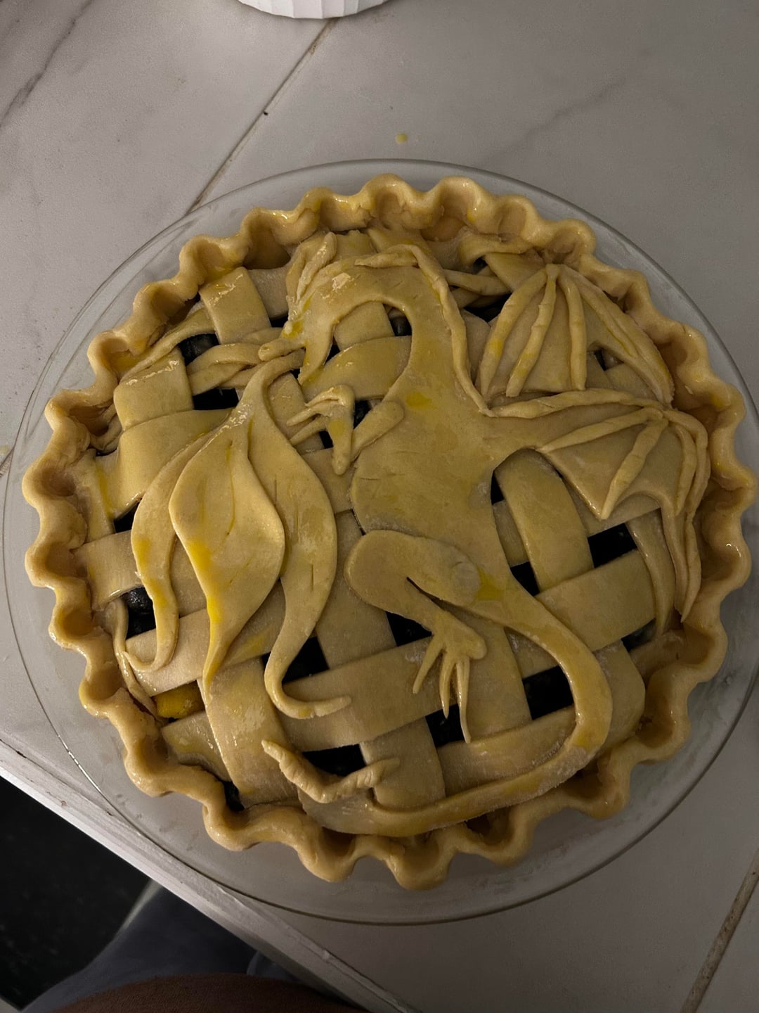 The pie is amazing. Who doesn’t love a pie? Who doesn’t love dragons?