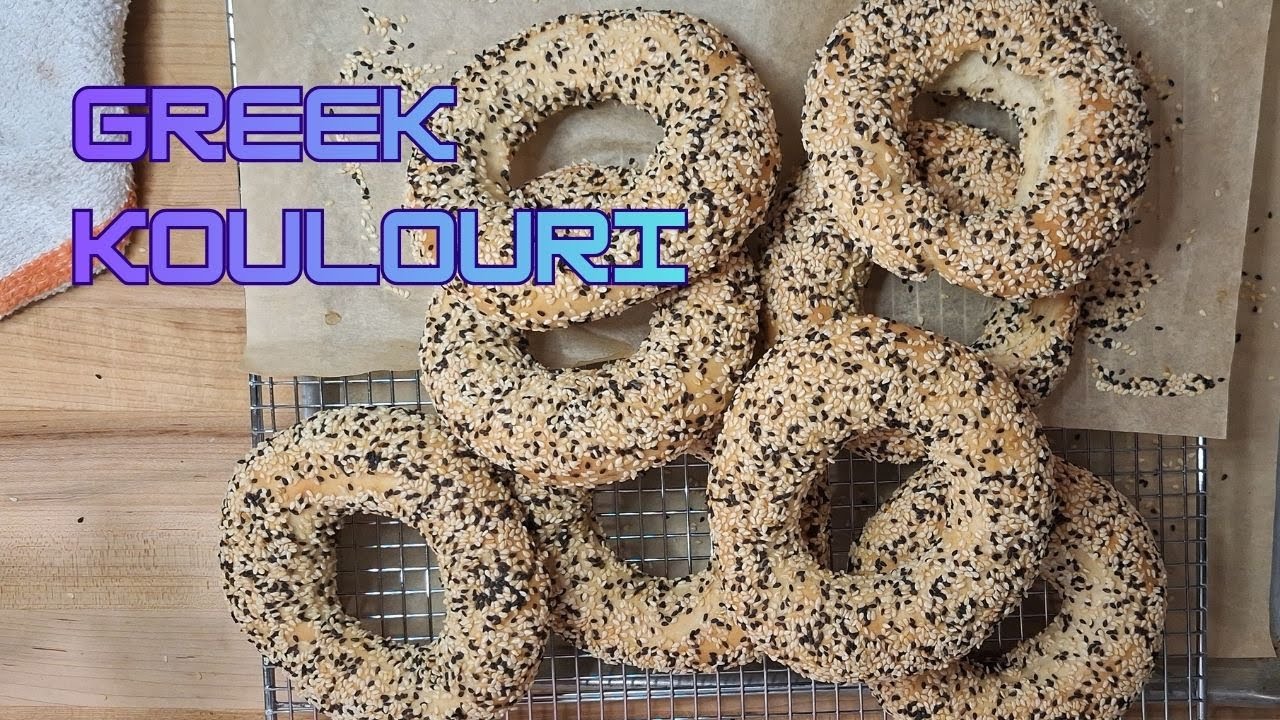 Today we’re going to be making some kulura the salonikis. We’re going to start by portioning out our dough balls. We’re doubling the recipe which is in the comments or description below. Just getting a nice seal with our giant scraper. We’re going to let them ferment at least 2, three days for maximum flavor and ease of use. Okay, let’s just fold these guys in to themselves. There we go. Give them a spritz. Wrap them well. Cover them. Like I said, we want to let them ferment for at least 2 to 3 days. Okay, so now they’re at room temperature. We took them out of the refrigerator. They’re ready to go. They’re room temp. So, we’re going to start assembling. We’re not going to use as any flour at all if we can. So, let’s prep some other stuff first. Got some warm water here that we’re going to dip the bread in before we dip it into our sesame seeds. Okay, I got a little tuxedo thing going on here. Some white, some black. You can put some papas, some other grains, but just want to keep it traditional. You could even braid this if you like. Okay. So, we’re going to just put a little bit of molasses in our warm water. Not too much. Maybe about 3 tablespoons. So, now these are at room temperature. We’re going to roll them out here. We’re going to flatten them almost like a bagel. So, you can see they’re nice and airy. We don’t want to deoof them too much. If you want, maybe get a little water on your hands. Okay. We’re going to just roll the middle out if you got any bubbles. But you see now that we’ve let it ferment for a few days, it’s really easy to work with. Okay. So, these are going to be about I don’t know maybe 15 inches long. Okay. All right. We’re not going to knot it. We’re going to join the ends like this and kind of roll it back and forth almost like a bagel. Then bring it up in your hand a little like this. Okay. And actually let gravity do its work. Okay. You don’t want them too big. Okay. The ones in grease are probably double the amount of batter. So, this is about the size we want right here. But let’s just pinch here. Okay. And then just evenly get around here. Okay. They’ll kind of shrink back to normal. All right. But we’re going to dip them in our water now. So, the best way to do this is to set this water, sesame, parchment. Okay. So, we’re just going to dip it in. Maybe give a little stretch. Just dip it in a little bit. Okay. Let that water drip off. Okay. Okay. Okay. Then just I don’t like to handle too much here. Just shake it back and forth. Okay. Okay. We’re not pressing it like a bagel. Just getting like that and lightly. And then we’ll kind of do one of these things. Okay. And then we’ll put it on our tray. Okay. And so we’re going to have about six to eight of these. All right. We’re going to fill these up. Another way is just to do like one of those bagel things. Or you could do like this. These are going to go into about a 370 375°ree oven for about I would say 15 to 20ish. Okay. Okay, they’re going to poof up. Okay, you don’t want them too dark. All right, you just want the sesame seeds to get nice and toasty and that’s pretty much it. Okay, we’ll be back. All right, good. Ah, yes. Nice and golden brown. Okay, nice crust. You can hear that’s airy in the inside. Nice brown crust on the bottom. Very hot. As you can bear, just try to gently put them on here to crisp up. Never leave things like this that are very toasty and that you want to get crunchy and crispy. Just straight on the tray cuz they’re going to steam and there’s no air that’s going to get underneath. This is the whole method to this. Don’t put the tray right on this because it’s not a cooling rack anymore. You’ve defeated the purpose and you’ve created a heating rack. So, let me get the other batchi. So, one way to take the parchment off is to grab it and just slide right off there. I have all these beautiful make a sandwich out of these. These are like the Greek kurya or just eat them with a nice fraed. Okay, hope you enjoyed this. Like I said, there’s two ways to do it. You could punch the hole or stretch it and braid it. Nice light air crust. We need fetal