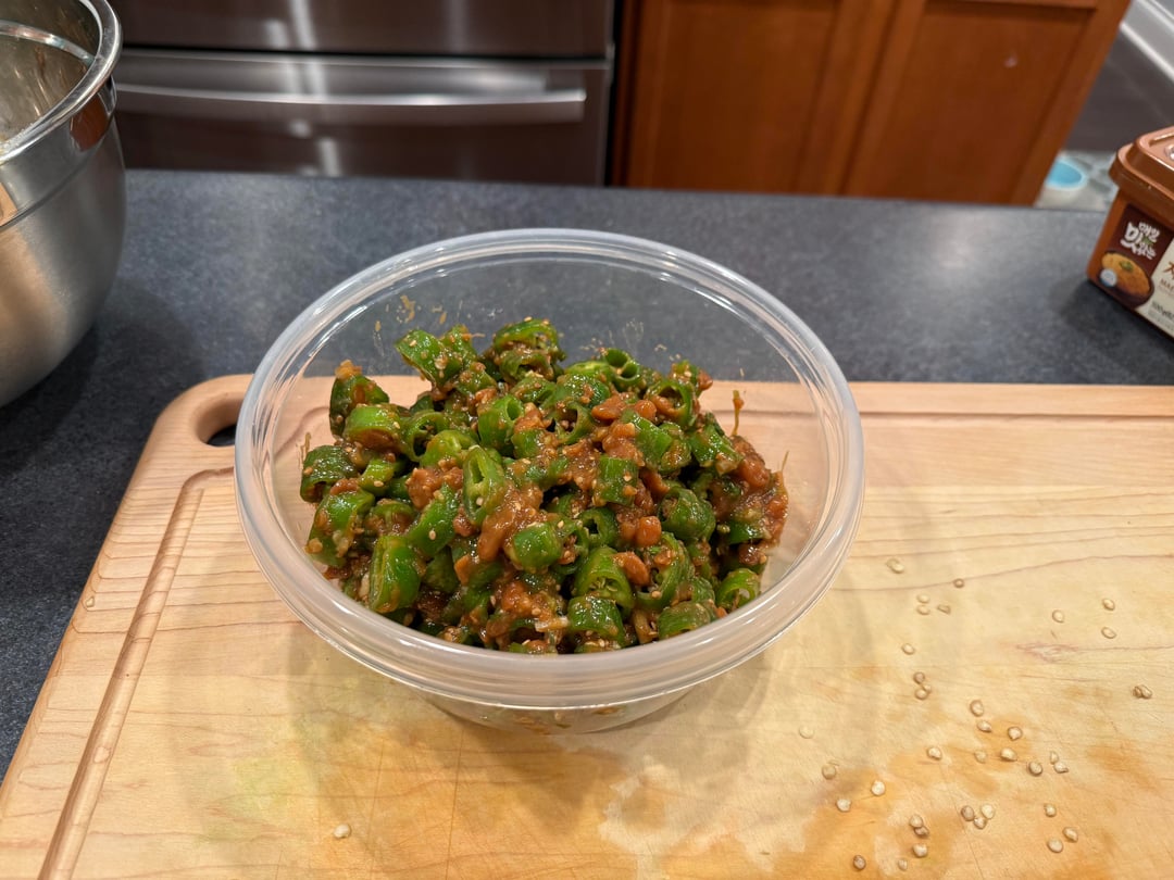 Oi sobagi, gochu doenjang muchim, and sigeumchi namul