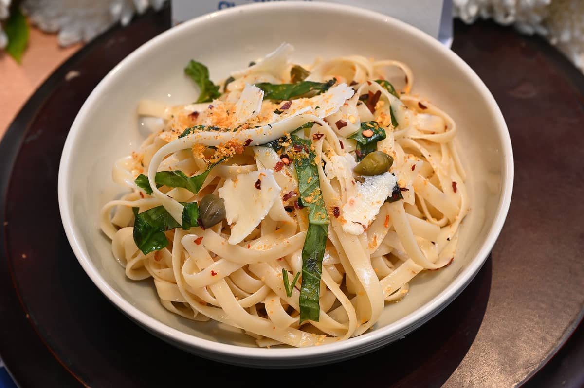 Fettuccine alla Chitarra with Chilli Garlic Parsley: This classic oil-based pasta shines through its simplicity, enriched with parmesan and parsley. A warm, comforting meal for chilly winter days ahead.
