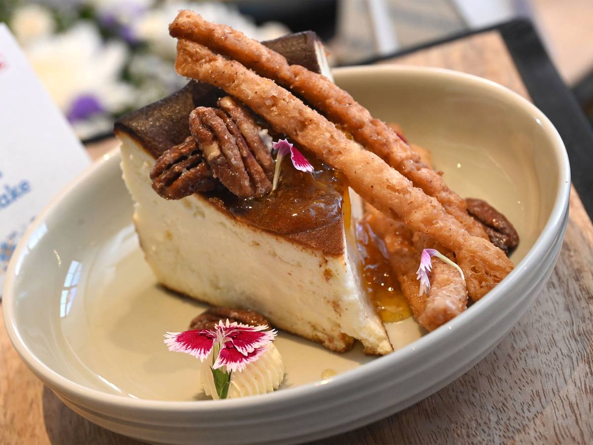 San Sebastian Burnt Cheesecake: A beautifully charred cheesecake accented with orange zest and candied pecan. Light yet luxurious, the orange cuts through the richness of the cheesecake, elevating the flavours.