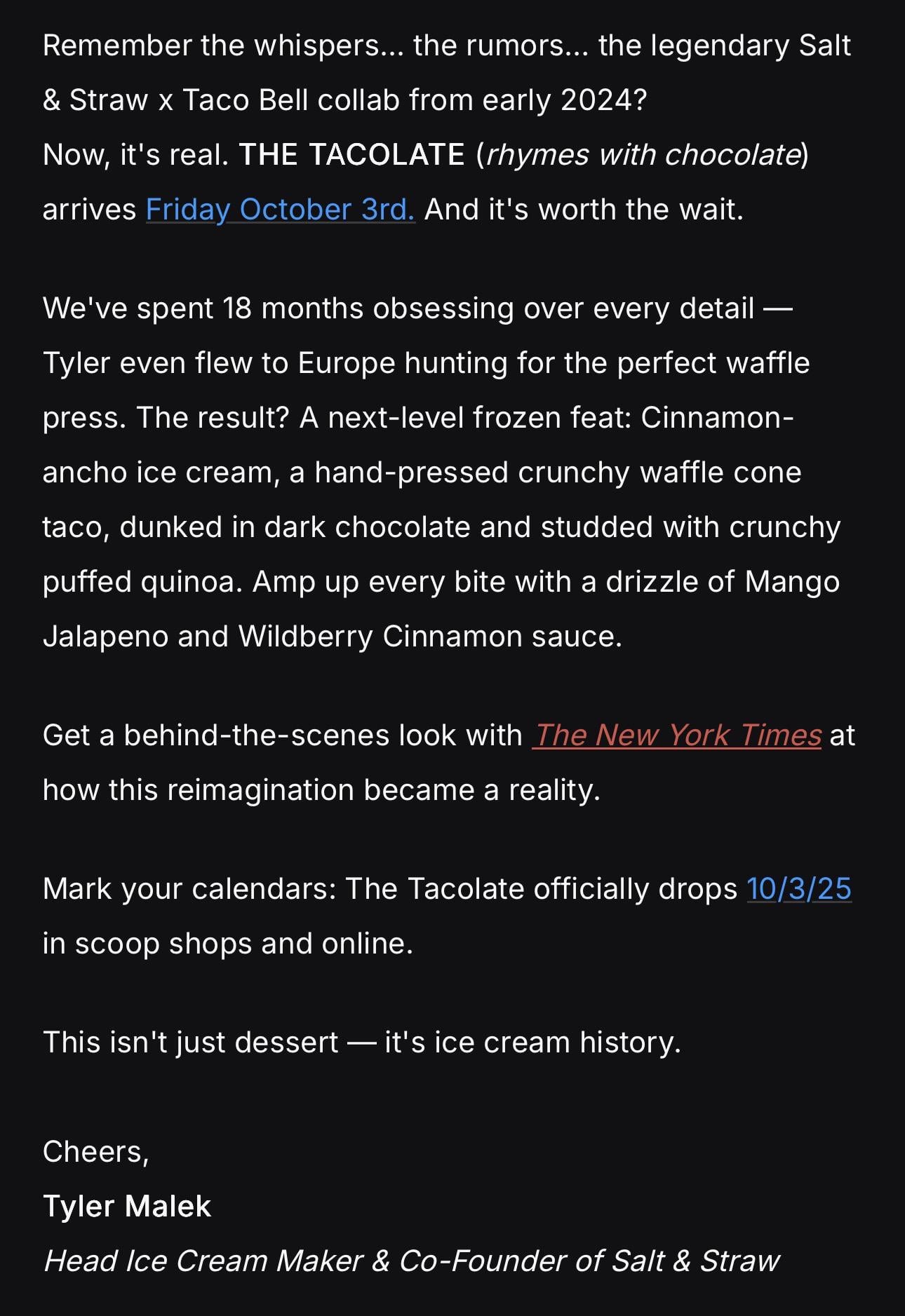 I can finally stop calling Salt & Straw: their revival of the Choco Taco arrives 10/3/25by eatingclass Dining and Cooking