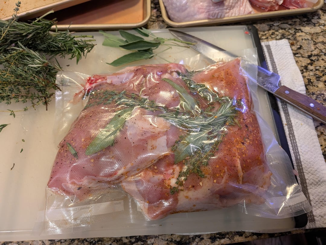 Super hyped about my sous vide turkey. Started at 6:00 a.m. this morning, going to smoke it for the last 45 minutes. I'll send a picture after it's done! Happy gobble day!!!!!