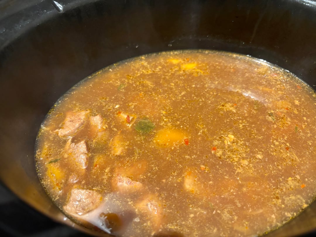 • beef stew (beef, onion, peppers, spices) with pearled barley