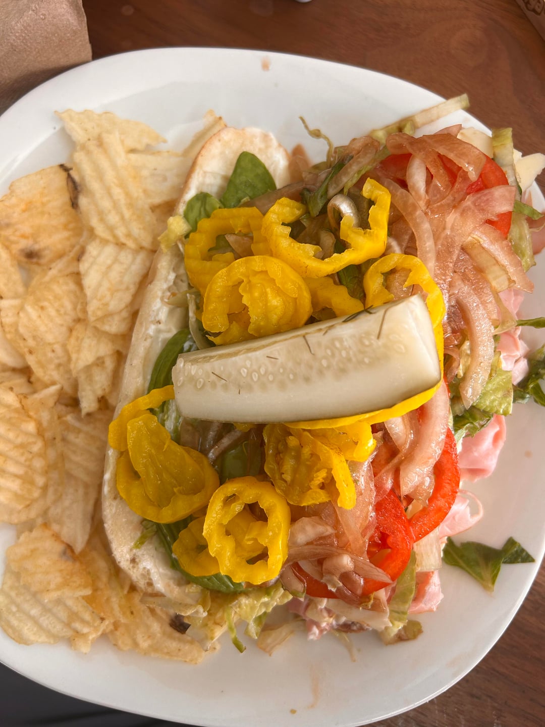 last one is an american taco also called a sub. Prefer cold cut with oil and vinegar, black forest ham Lettuce tomatoes onion, avocados slices, banana peppers and a pickle with a side of thinly sliced fried potatoes.