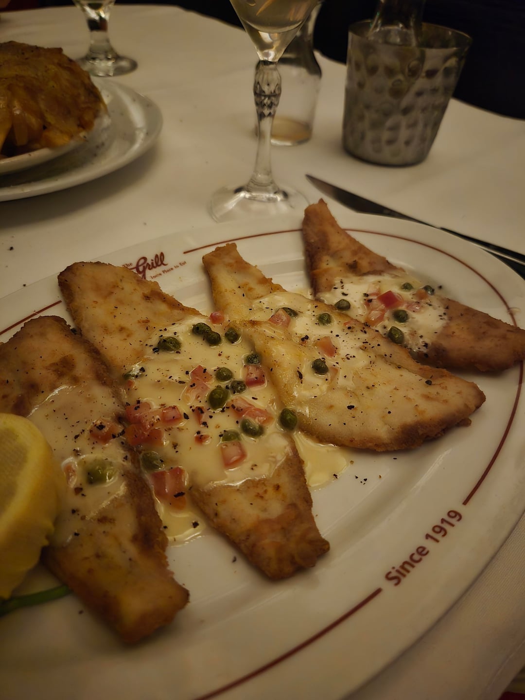 Filet mignon, sand dabs, Lyonnaise potatoes, jellied consomme, and a martini – I've gotten the martini sidecar before, but never the olive juice sidecar! Fantasticby Easy_Potential2882 Dining and Cooking