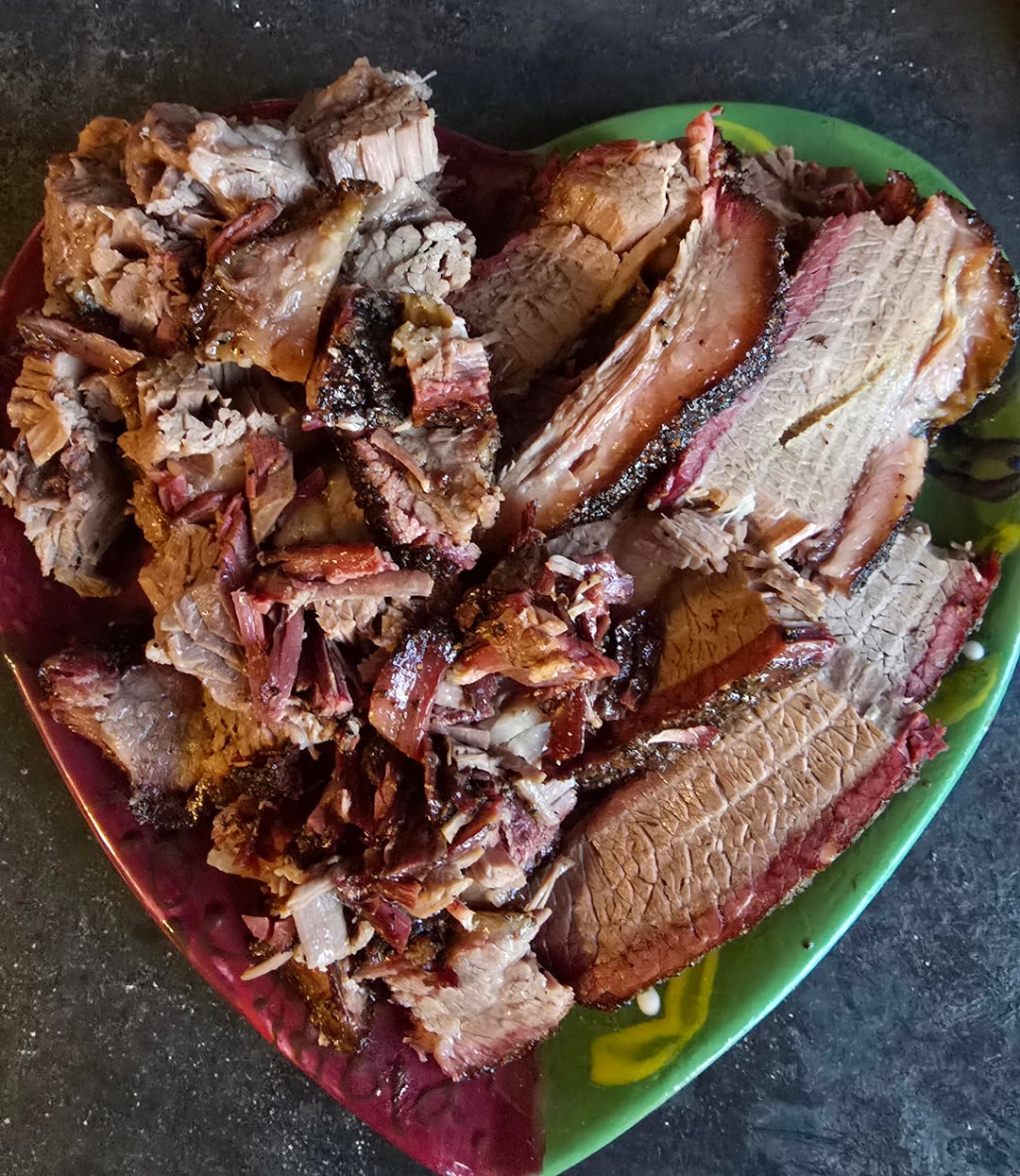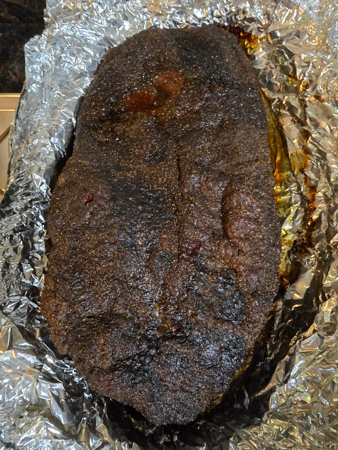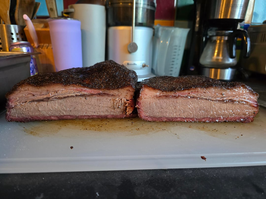 18.5 lbs trimmed down to 13.5 lbs. 16 hour smoke. 14 hour sous vide hold at 150° F.