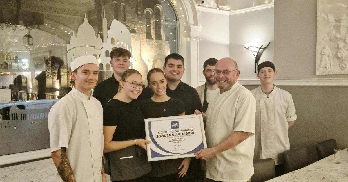 Casa Romana Italian Restaurant, in Carlisle city centre, has won a Good Food Blue Ribbon Award for the quality of their food and consistently good service.