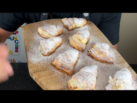 And now you know how to make Neapolitan. Let’s start by putting 500 g of flour with 200 m of water and 8 g of salt all together. Now with the hook attachment, mix everything at medium speed for about 10 minutes. And before going ahead, if I can please ask you to help me out to grow this channel as I’ve been posting every single day for many months now. It will take you one second to just follow and share my recipe. Thanks a lot. Let’s go back in the video. And the mix looks like this. And you might think it’s not ready. It actually is. Let’s remove the mix from the bowl. Now compact with your hand. Simply go in here. Start passing through the machine on the larger size only. After two, three times, you’re going to see that the mix will change completely face. It’s going to look something like this. Now, simply fold it, cover everything, and let it rest like this for about 1 hour. Let’s remove the dough from the thin wrap in the machine from the largest part to the smallest part. Once the dough start to become too long, help yourself with a rolling pin. Just roll it around and make your life much easier. and we pass through the all the sides of the machine. Going to be left with a massive dough. Grab a rolling pin and wrap it around look like something like this. Let’s grab couple of container where we can put rolling pin and can stay still. Grab butter. The original recipe is with strutoto but if you can find butter is fine. Let’s cut the first part to make it even. Now just on the first part don’t put any butter the beginning. All right, that’s it. Now with your hand keep covering in butter. While you’re doing so stretch the dough but gently and keep rolling. Now as is too big just squeeze it a bit with your hand. Cut the external part about a finger thick. Just slice them. There they are. Okay. Now with your hand simply open them up like this. Put the filling. Grab a large pan and go inside with 400 ml of water and eight grams of salt and bring to boil. As soon the water is boiling, add 150 gram of seimolina, not the flour. Seolina and mix very fast. Now transfer in a bowl. Let it cool down. Once it’s a bit cooler and I have to change bowl because this is too small. Add 200 g of sugar, 400 g of ricotta and mix everything. And on top of that, you should add candidi. But I don’t like it, so I skip that. Baking tray with a baking paper. Grab back your foyatella with a spoon. Fill them until the top. Then close the front part and put on the tray. And once we’re done, in the oven 200° C for 20 25 minutes. Finish it up with icing sugar and enjoy a delicious napana. Ciao.