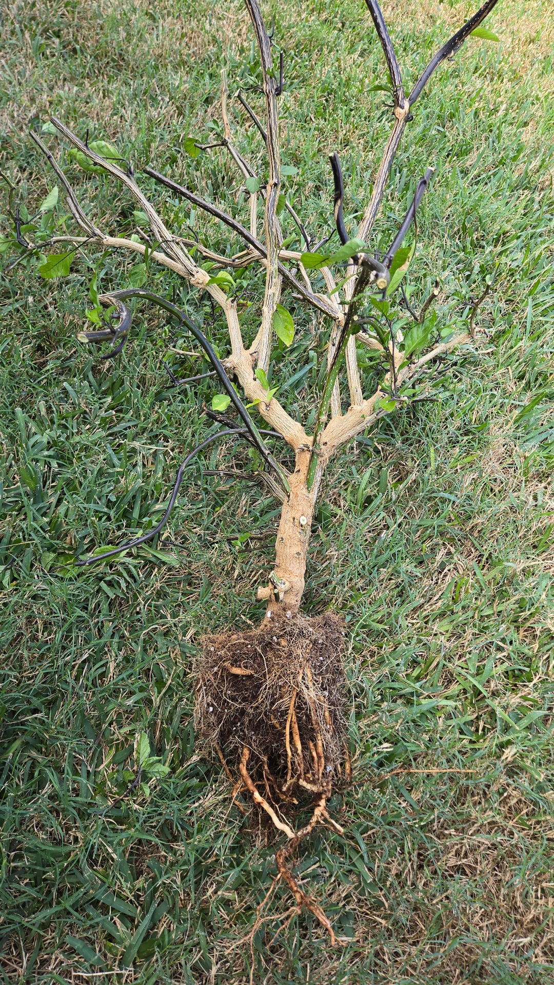 With freezing temps on the way in Texas, I couldn't pass up trying to save this behemoth of a plant. Started in a 1 gallon pot indoors for the first 6 months or so then I just halfway buried the pot in my raised bed this spring. It still had a couple dozen unripe pods but I at least saved a good handful and chopped ol girl up. I did have to mutilate the pot and roots to separate the two but we will see how it does. Planted into a new 1 gallon with coco/perlite mix, worm castings, and some Gaia Green to give it the best shot indoors. Will keep yall posted and Happy Thanksgiving!
