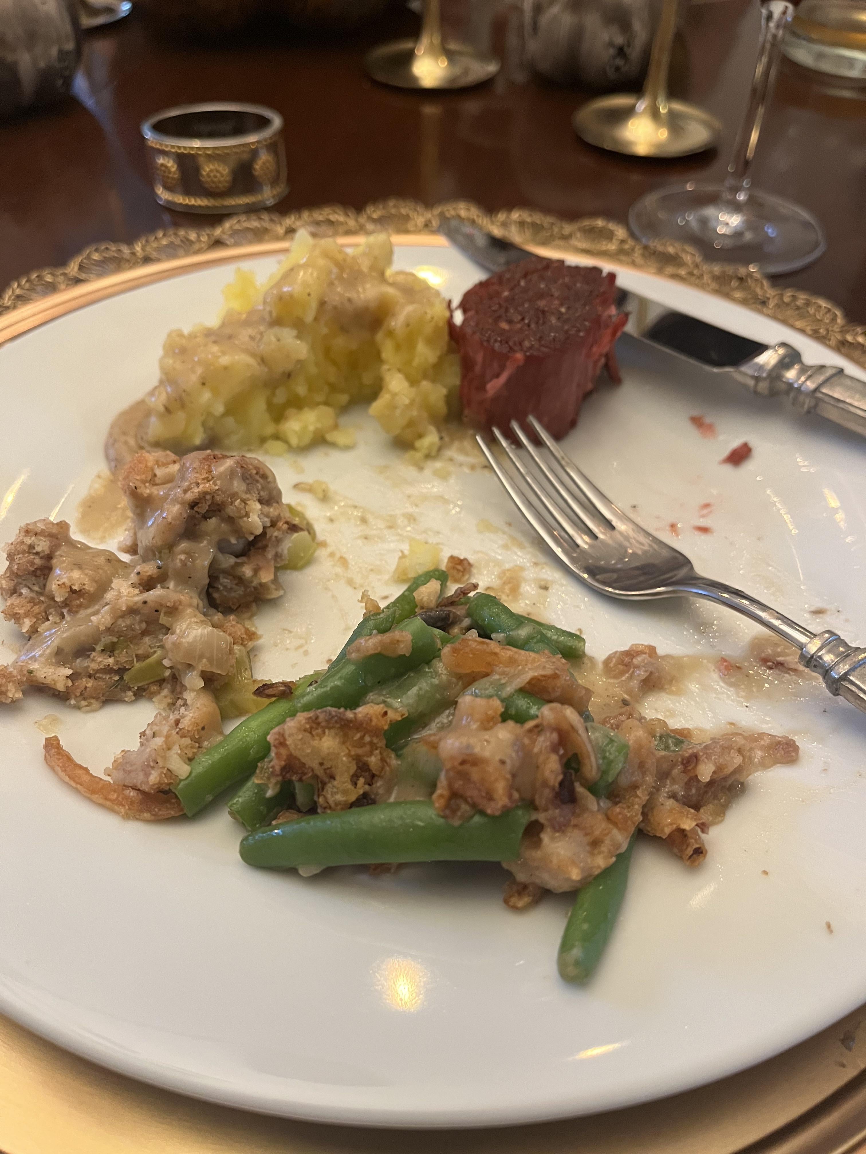 There were 19 adults and multiple kids! I brought a Juicy Marbles main for myself but my amazing omni extended family made vegan stuffing, mashed potatoes, and green beans and gravy just for me. Not pictured is the vegan apple pie made to accommodate my cinnamon allergy!