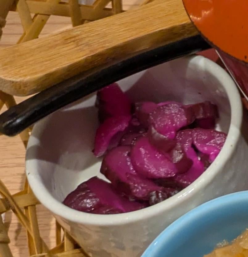 When we were in Osaka, we ate at a traditional restaurant and the food was amazing. Everything tasted great, but besides the hijiki, I especially loved these pink pickles they served.