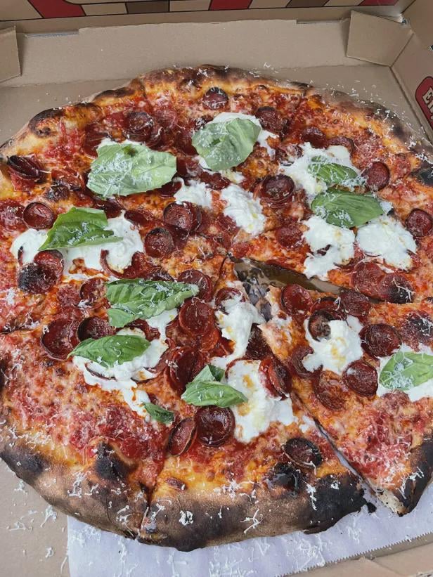 Onto the pizza itself, very very good! I got the pepperoni with burrata and hot honey. If you have had ever been to Brooklyn and had L'Industry this very much resembles it and honestly might be a dupe but its just as good. Super crunchy and flavorful, you can tell they are using very high quality ingredients.