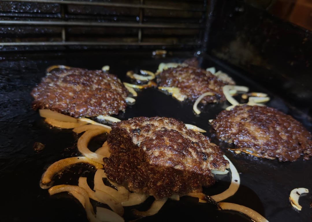 Lovely and compact.. no towering burger of tomato and lettuce and pickles and even fries in it. Just a good solid burger, Well done ✅👍