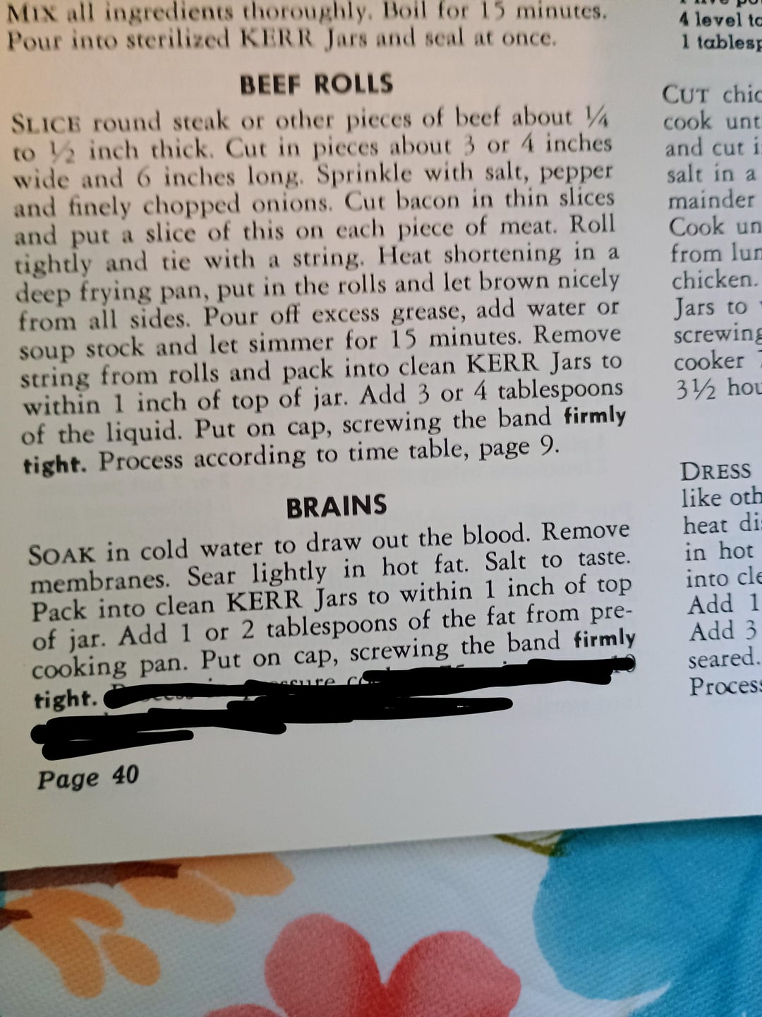 -Recipes for canning brains, heart, feet, and heads?!