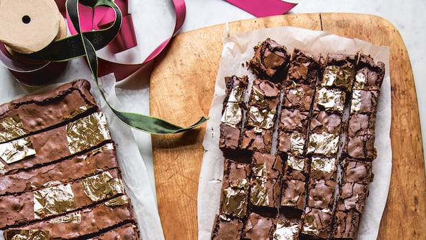 Not only does the festive gold leaf make Skye McAlpine’s Christmas brownies a true holiday table showstopper, but it also elevates the classic baked good into an exceptionally beautiful gift.