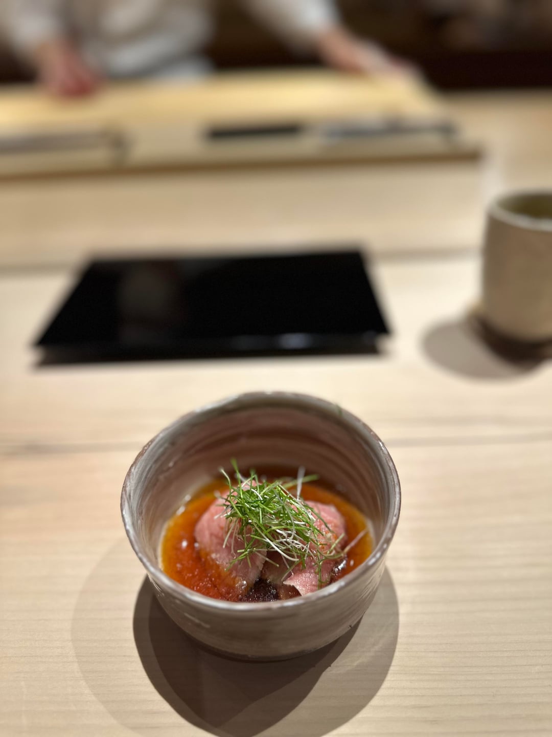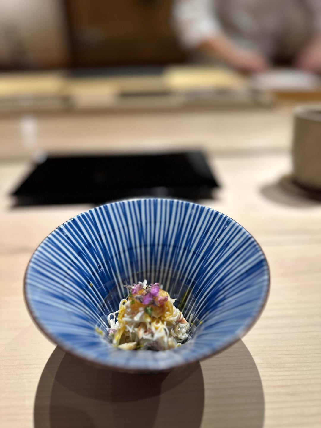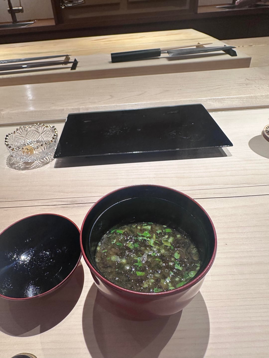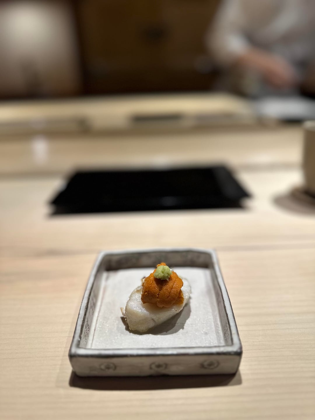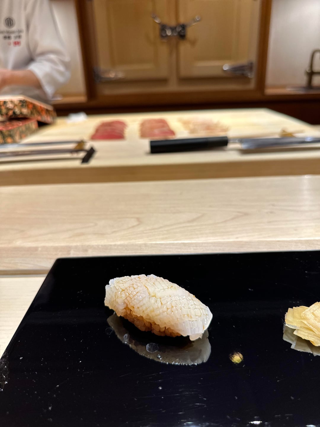 We were served two vegetables as Otsumami which is crazy. I thought it was a palate cleanser but there was only 4 dishes served before nigiri including hairy crab, white fish with uni, otoro in dashi and grilled tilefish. Nigiri includes buri, ika, flounder, cherry salmon, Zuke, otoro, Murasaki uni and hand roll. May not be 100 percent correct as I am basing this off memory and visuals.