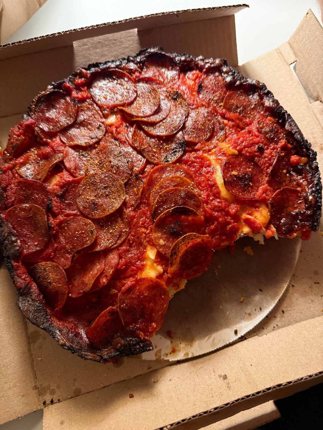 Pequods in Lincoln Park (for delivery): deep dish pepperoni pizza — my husband and I can’t help but be a bit of pizza snobs coming from NYC but we really wanted to try and like deep dish. My husband extremely disliked his experience and food at Lou Malnati’s last time so we decided to try this place after some research and we really liked it! Deep dish isn’t our preferred way to eat pizza but we loved how tasty the sauce was, the cheese, the pepperoni (which made it) and the really crispy outside crust. This held up for delivery and I even ate it cold while hungover the next morning.