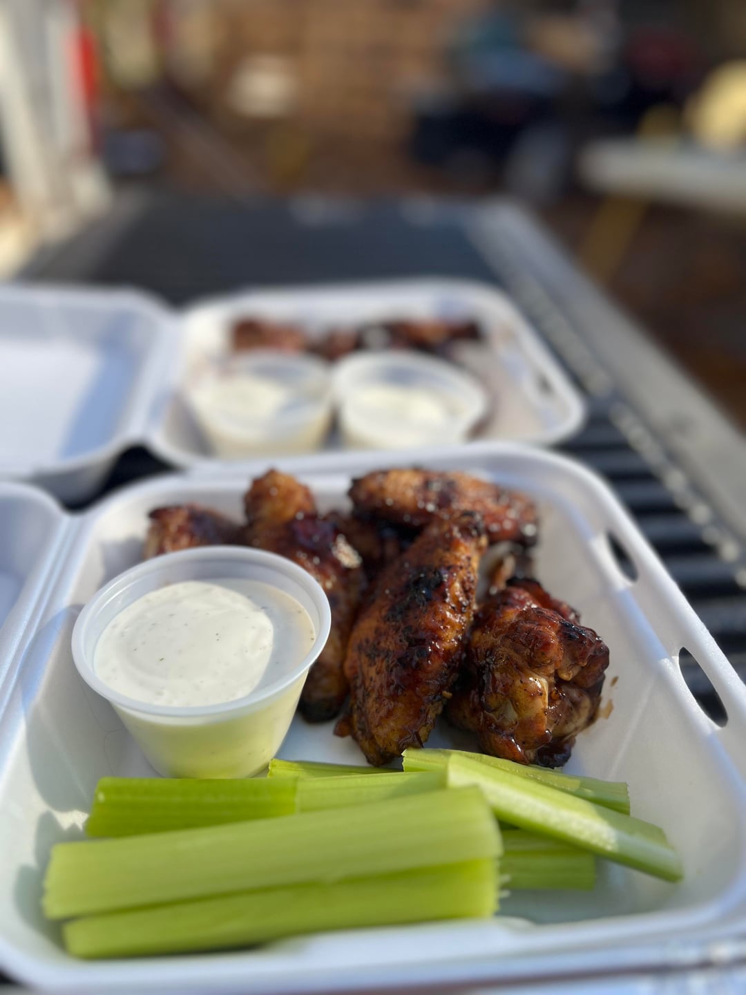 Order of grilled Sweet BBQ wings off the recteq 300 with Bear Mountain BBQ Bourbon and Double fried Buffalo from the Chefman. Days off, never rest when wings are fan favorites. by PWRHBBQ Dining and Cooking