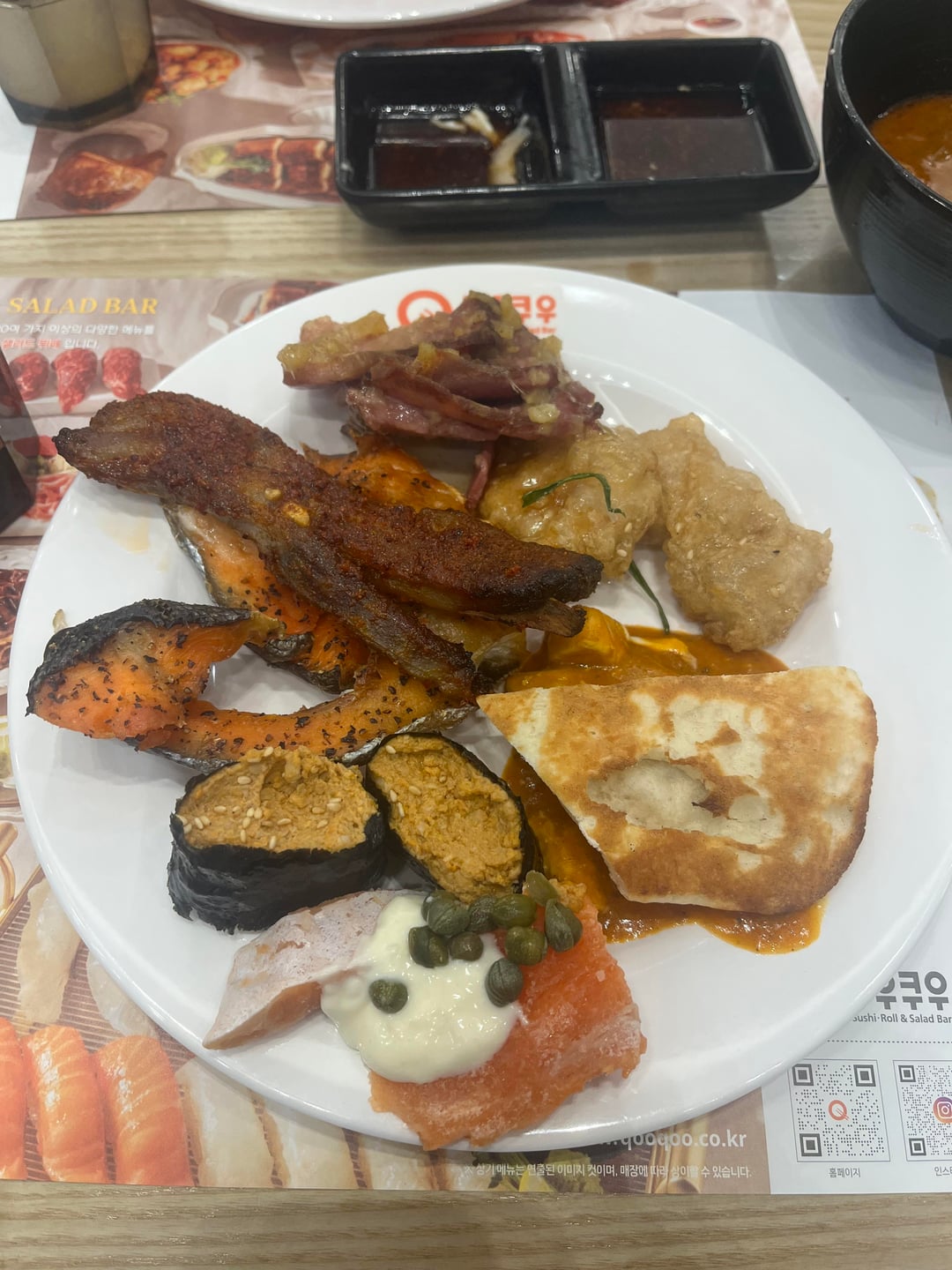 It cost 61,800 won for 2 pp. Very tasty food, especially for the sushi. You can see in the picture that we both loved it.