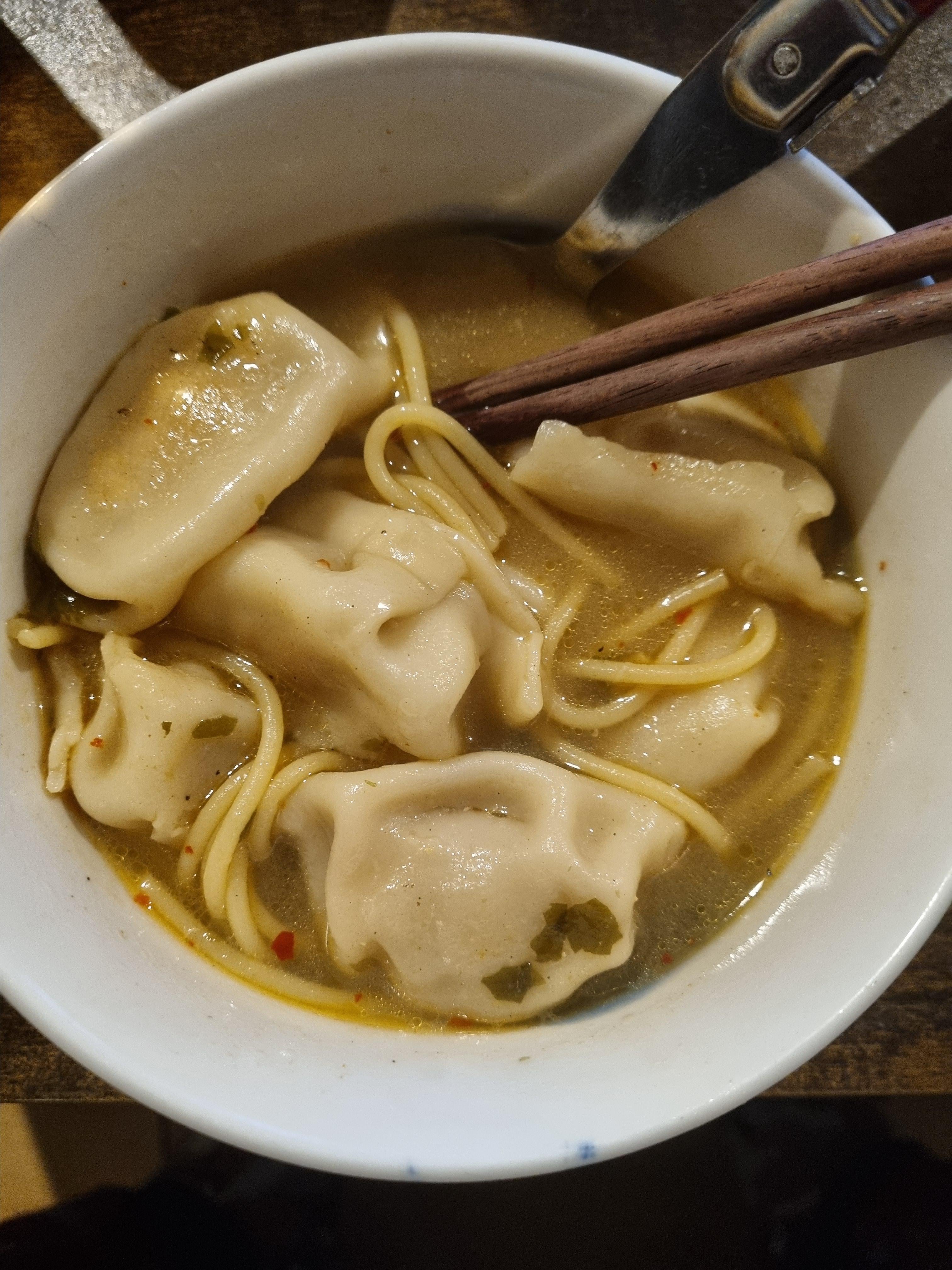 When you’re craving dumpling and noodle soup, but all you have is spaghetti.