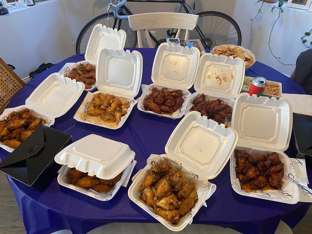 Annual guys football day. Wings from output. Go Bears!